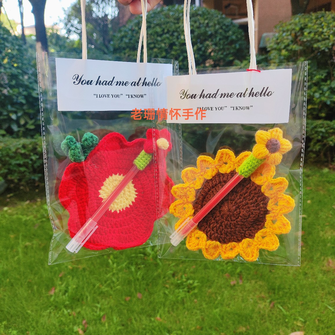 教师节礼物2025新款向日葵手工钩织妙笔生花泡芙花笔套杯垫送老师