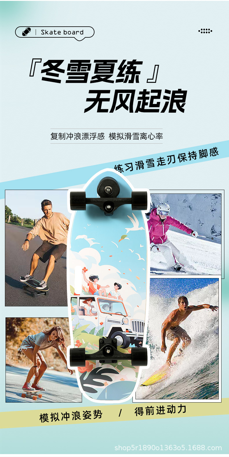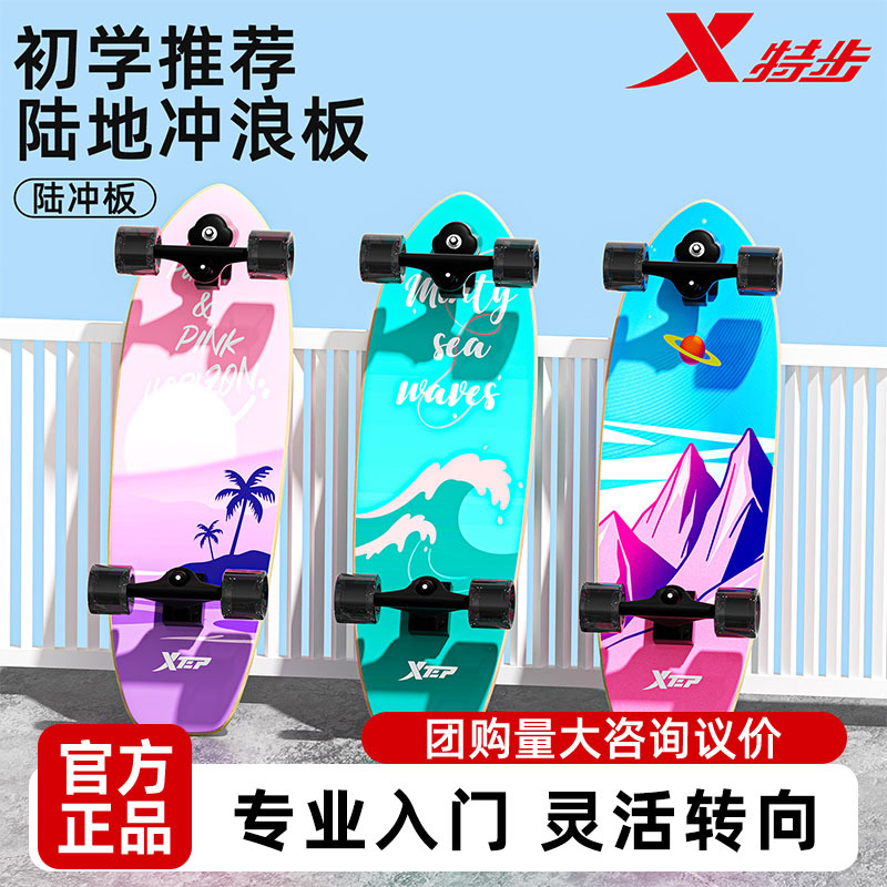 特步陆地冲浪板滑板男女生初学者路冲板业成人冲浪滑板儿童免蹬地