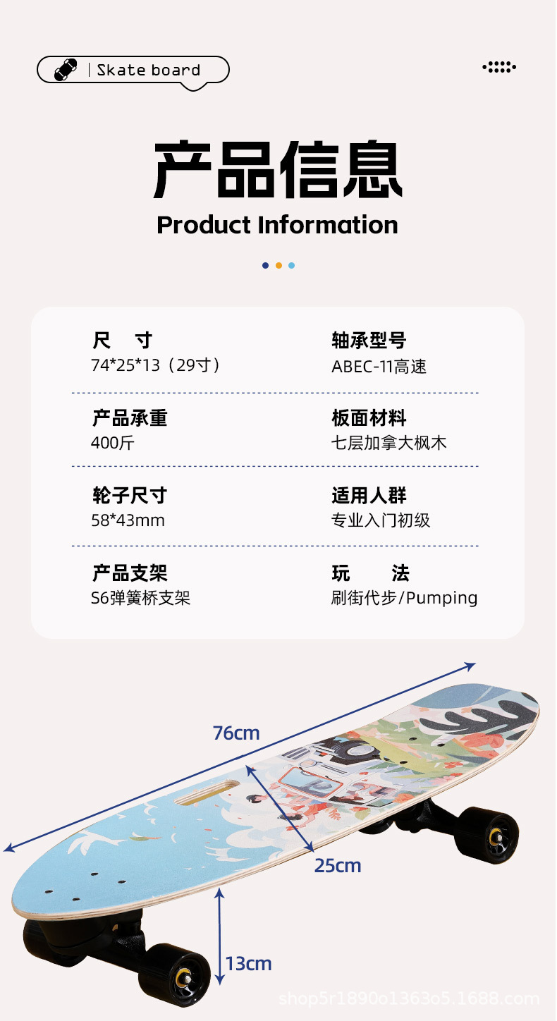 楓木長板スケートボード青少年男女長板スケートボードdiyメーカークロスボーダー