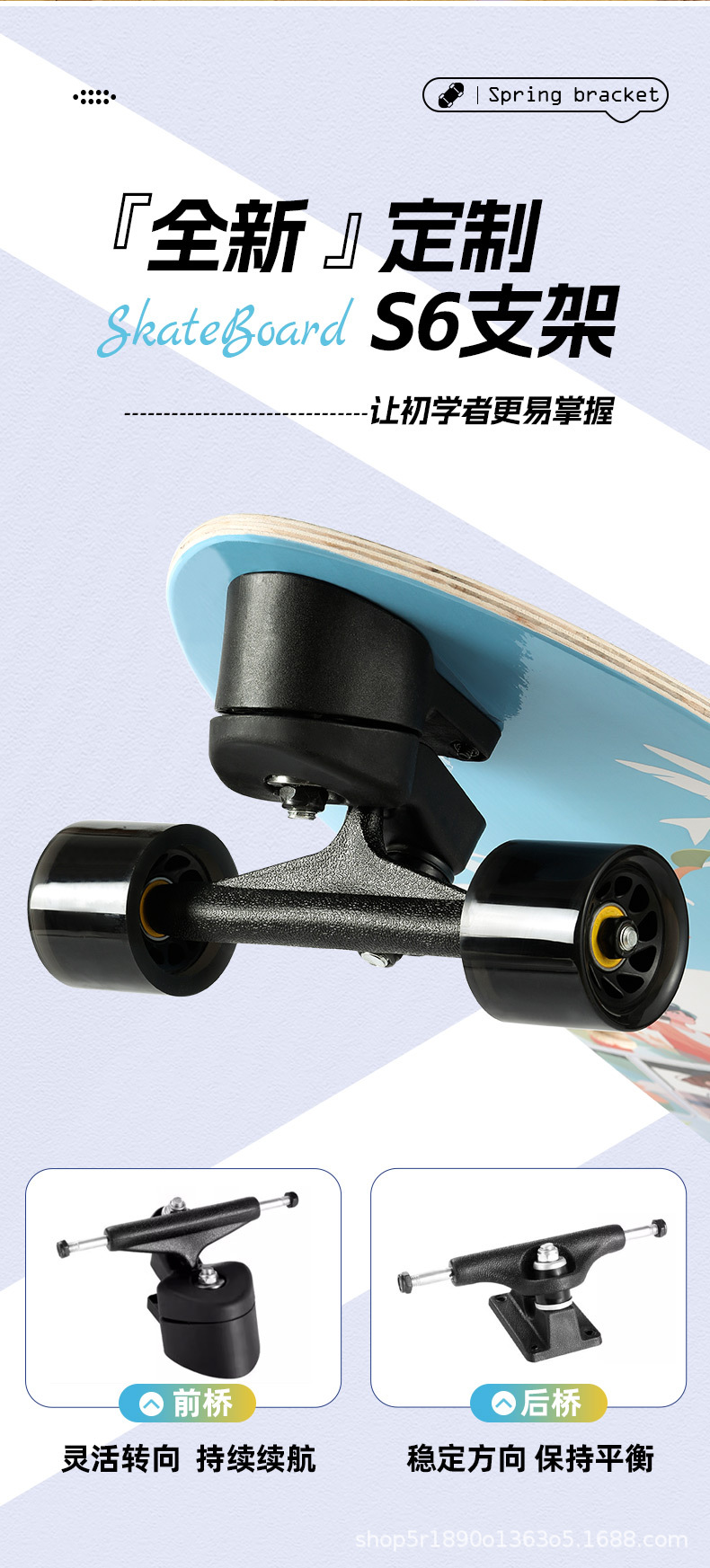 免蹬款路冲板滑板S5弹簧桥支架青少年成人刷街代步专业陆地冲浪板
