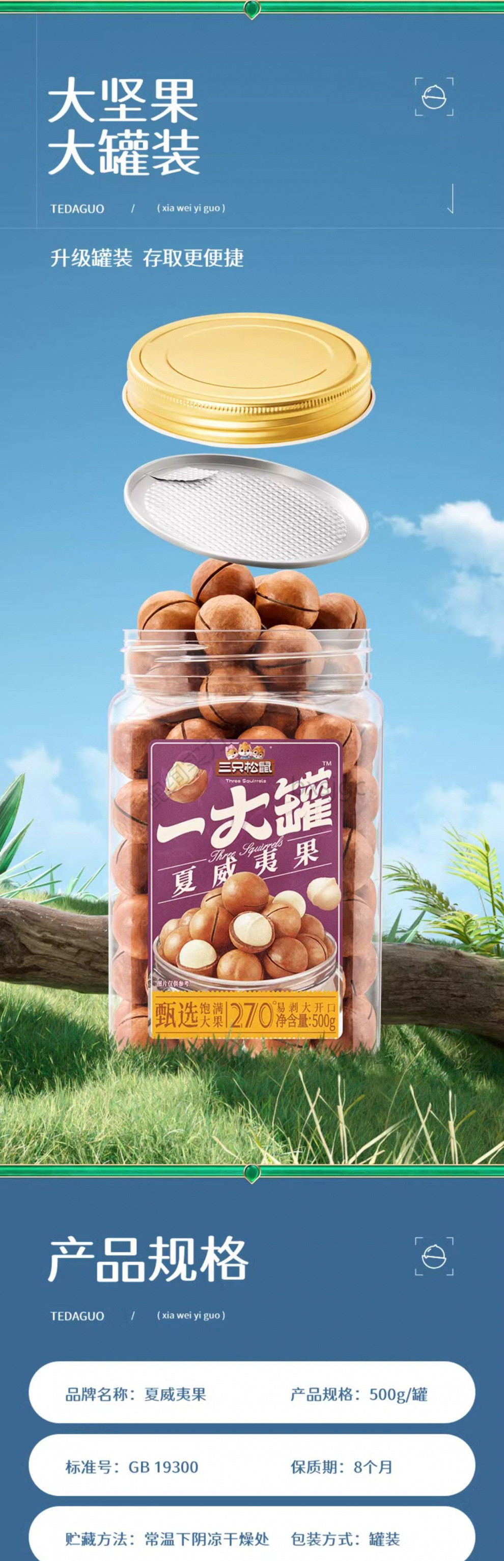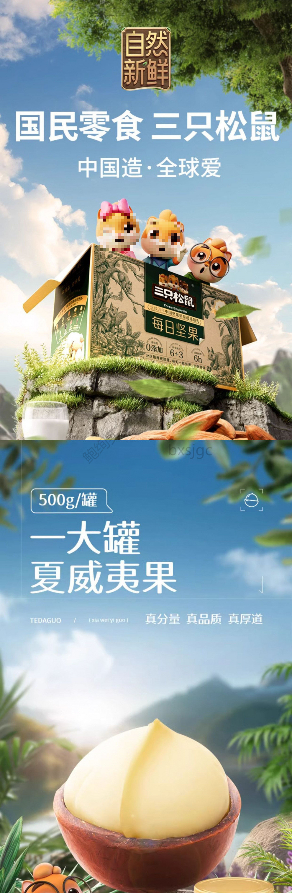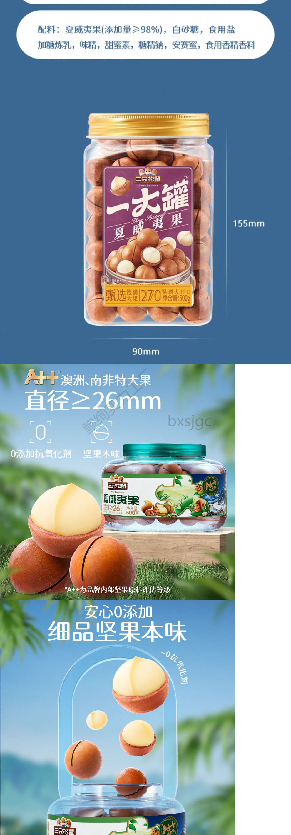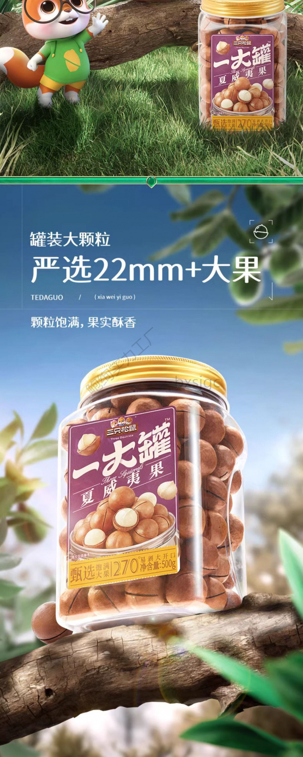 【リス三匹 _ 量贩装ハワイ果500g】ナッツスナック毎日ナッツ健康特大ドライフルーツ