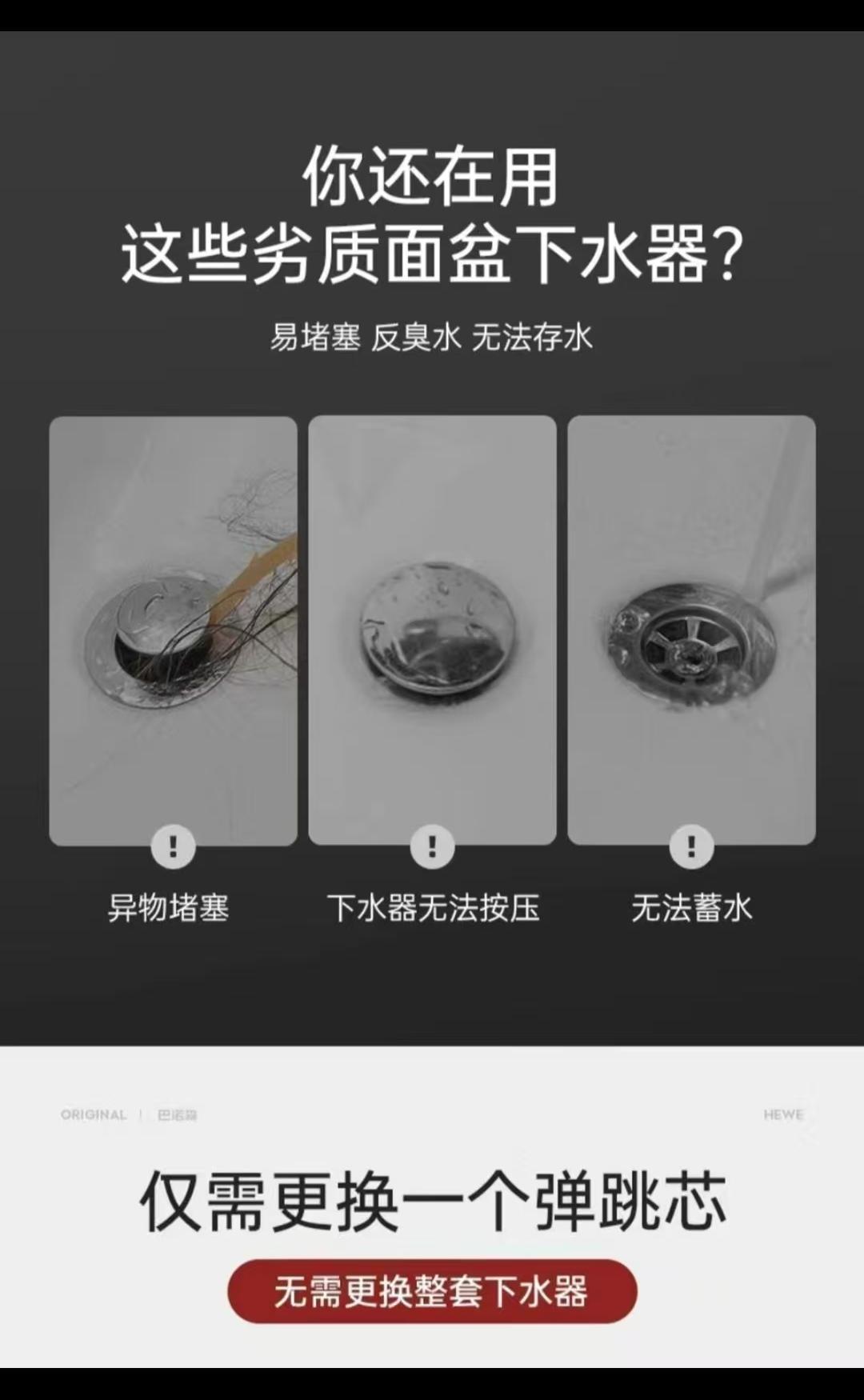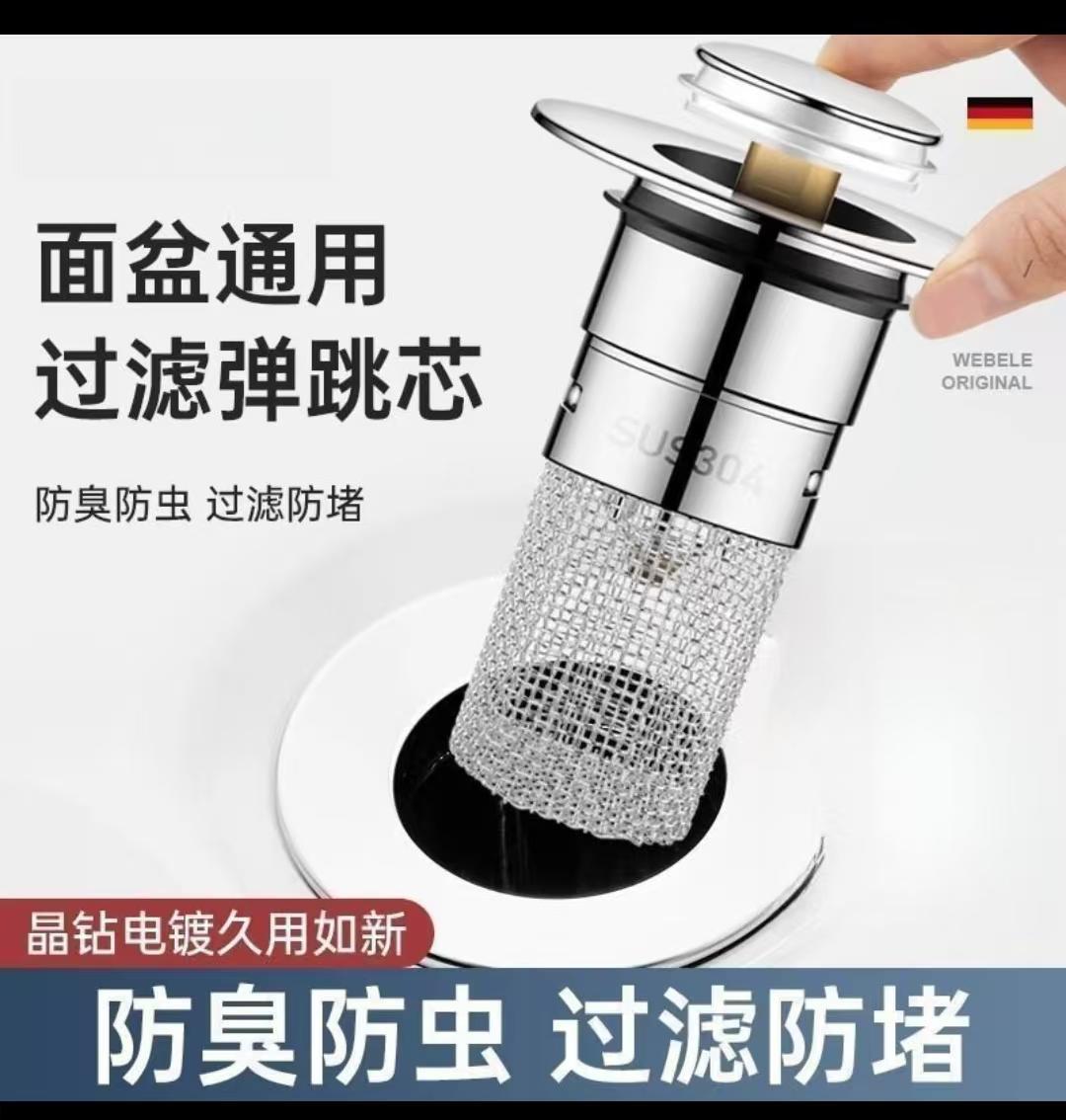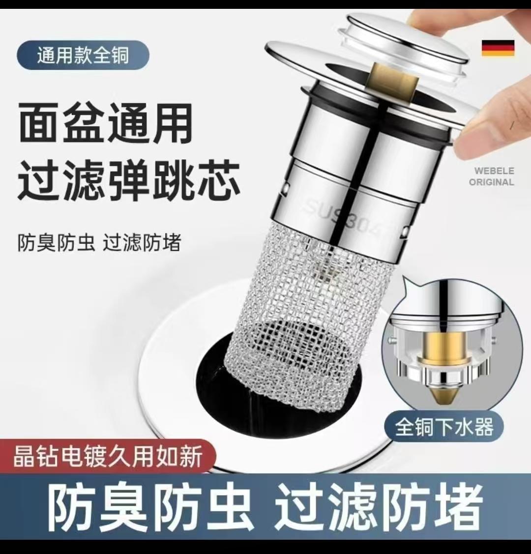 洗手盆漏水塞水池面盆按压式防臭下水器弹跳芯通用型洗手池过滤网