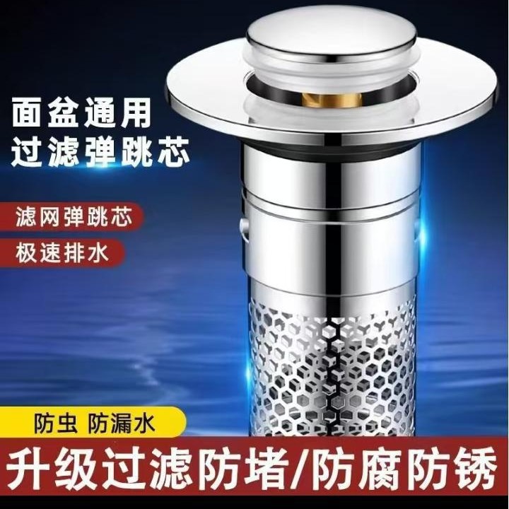 洗手盆漏水塞过滤弹跳芯脸盆水池下水器防臭网面盆通用按压式排水