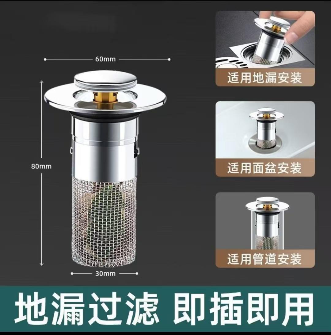 洗手池滤水网塞家用防臭过滤通用弹跳芯按压式配件防虫排水下水塞