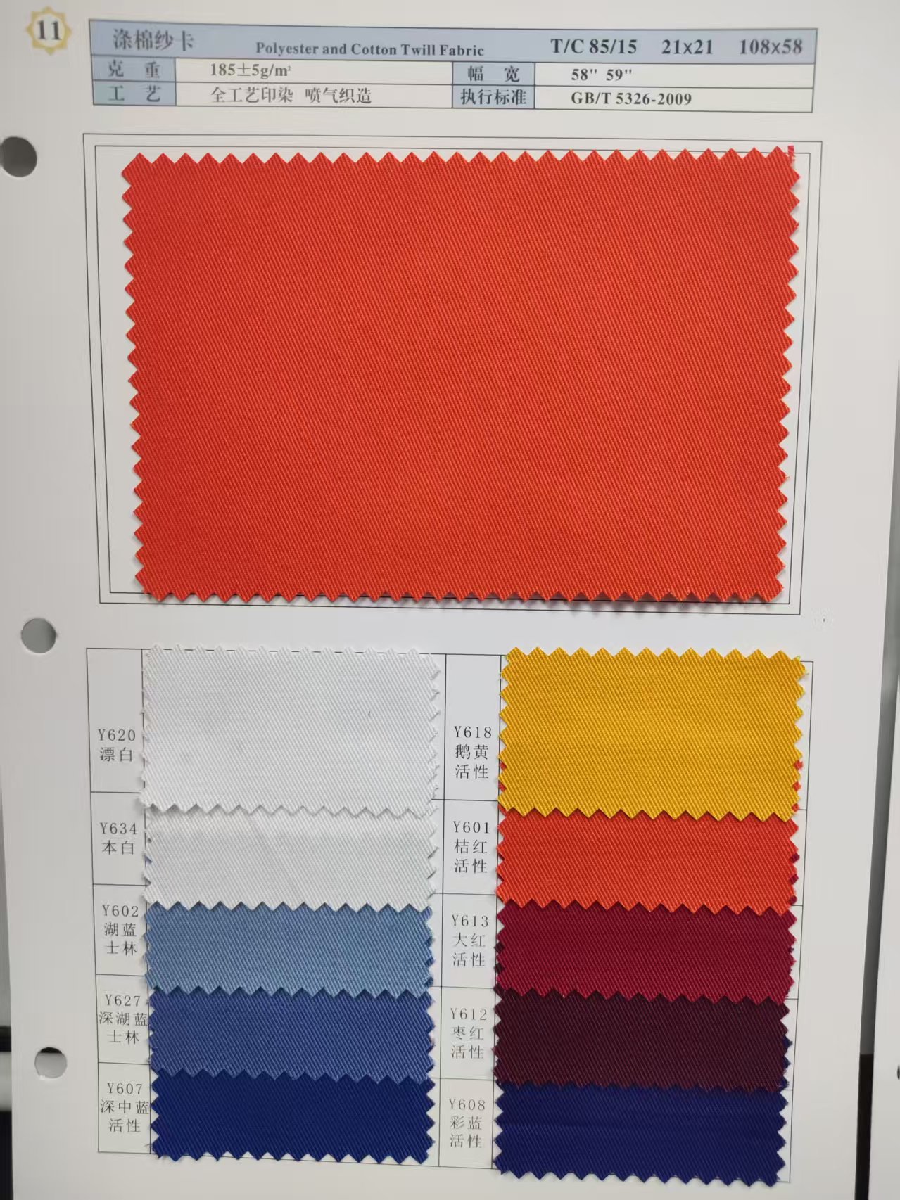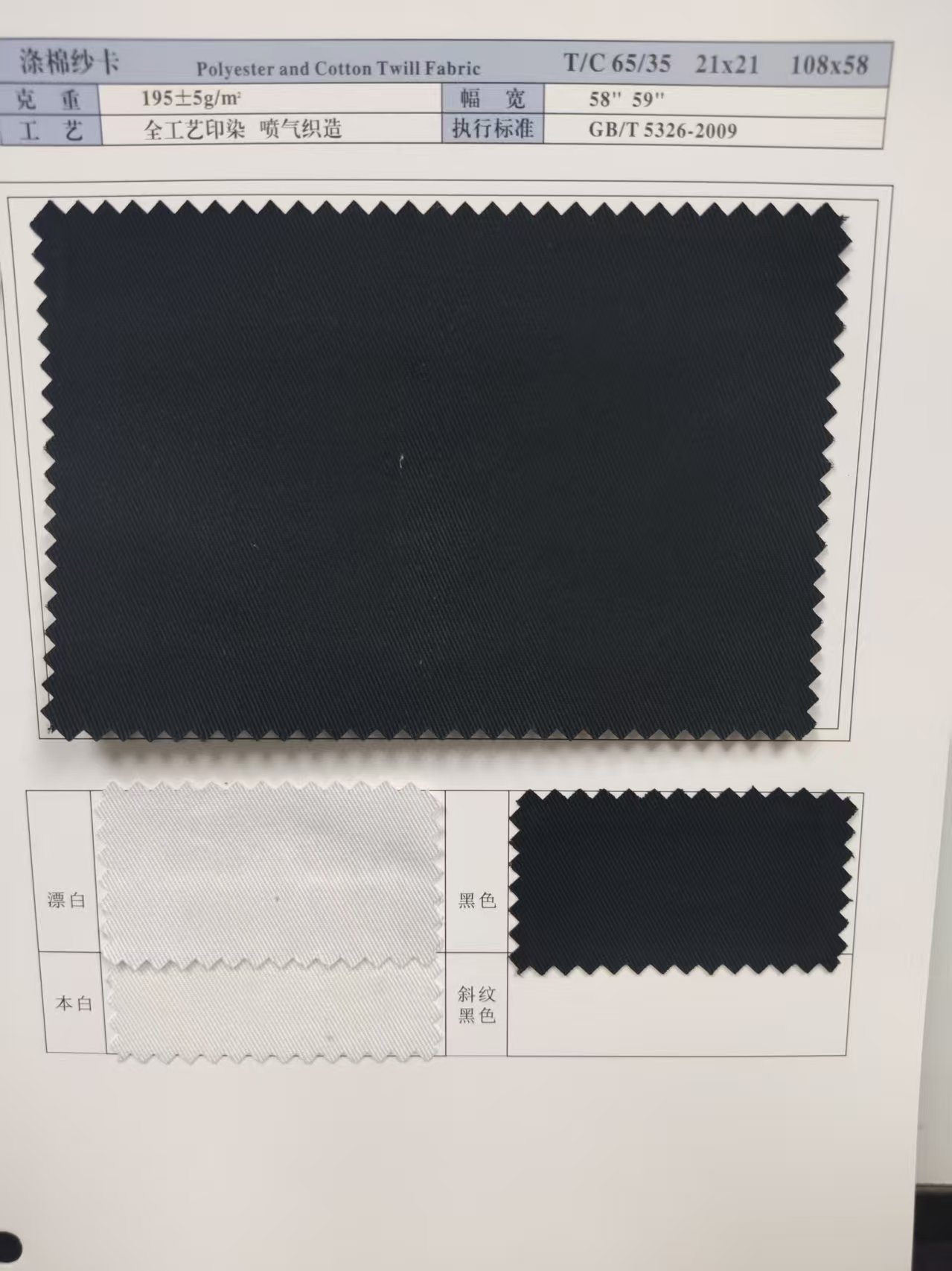 TC混纺斜纹纱卡21支10858 工作服帽子箱包里布料
