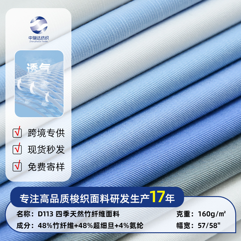 现货批发四季天然竹纤维衬衣面料竹纤维透气垂感强弹力衬衣布料