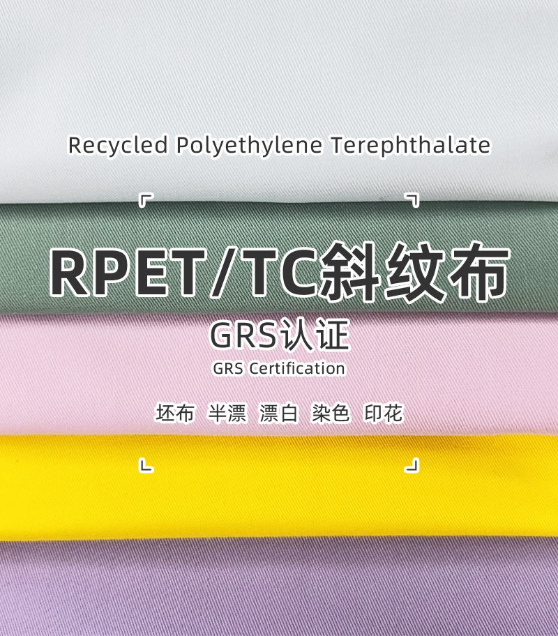 GRS認証RPET再生TCポリエステル綿/CVC綾糸カード環境保護染色帽子服装バッグ生地
