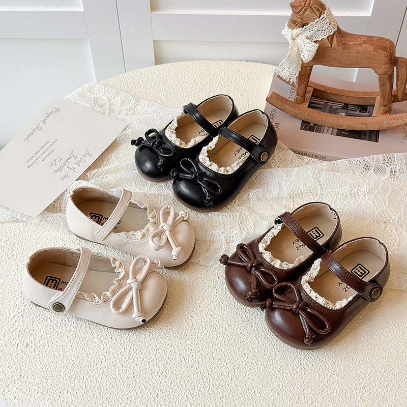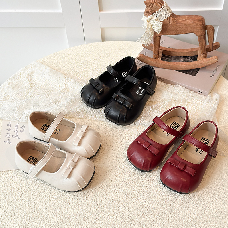 子供革靴女の子リトルプリンセスシューズ 2025 春と秋の新女の子蝶ネクタイベルクロシングルシューズベビーシューズ