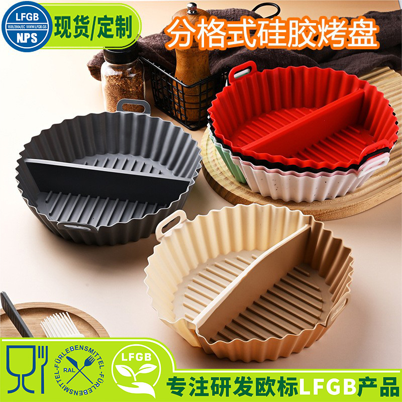 クロスボーダーのフォーマットのシリカゲルの焼き皿の高温に耐える空気の揚げ鍋の敷き物の台所の焼き皿の食材の分類のシリカゲルの皿