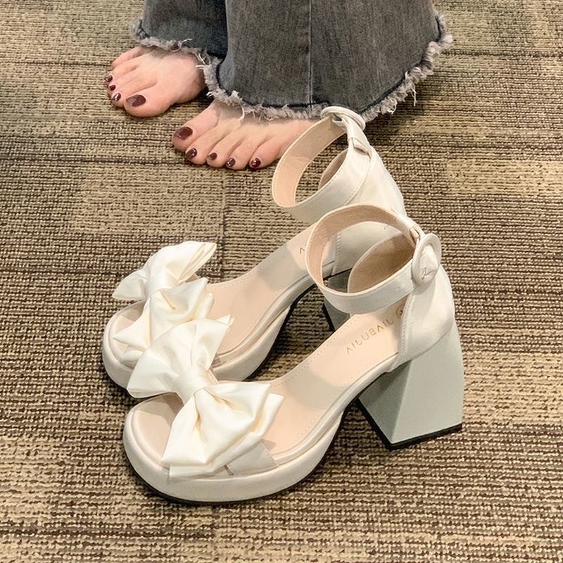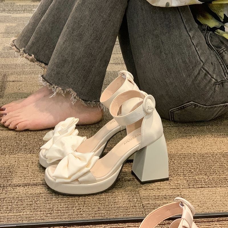 凉鞋跟女鞋凉鞋跟趾蝴蝶结粗带凉鞋高扣跨境2025夏新款外贸露一字