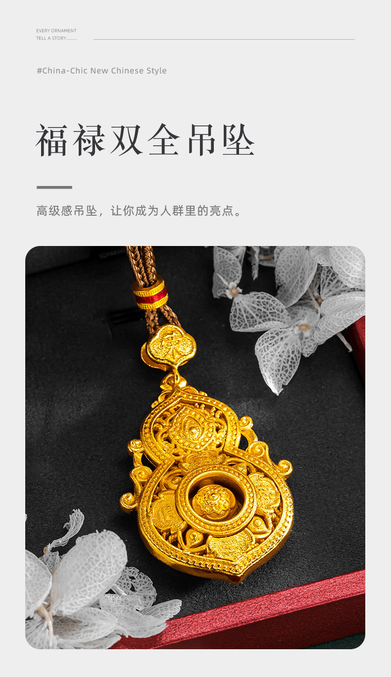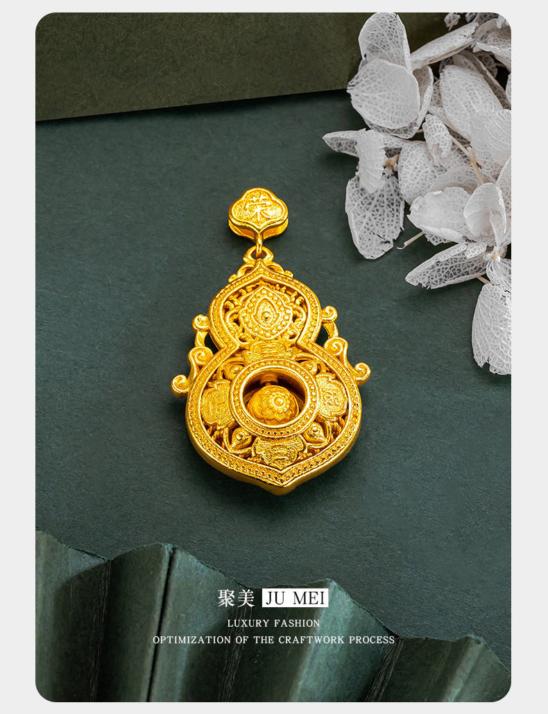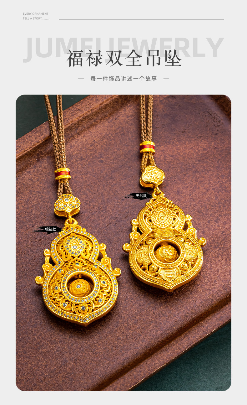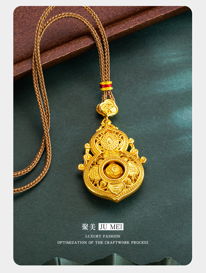 古法沙金福禄双全ペンダント透かし彫り喜報三元花糸福禄瓢箪回転玉ペンダント女性アクセサリー