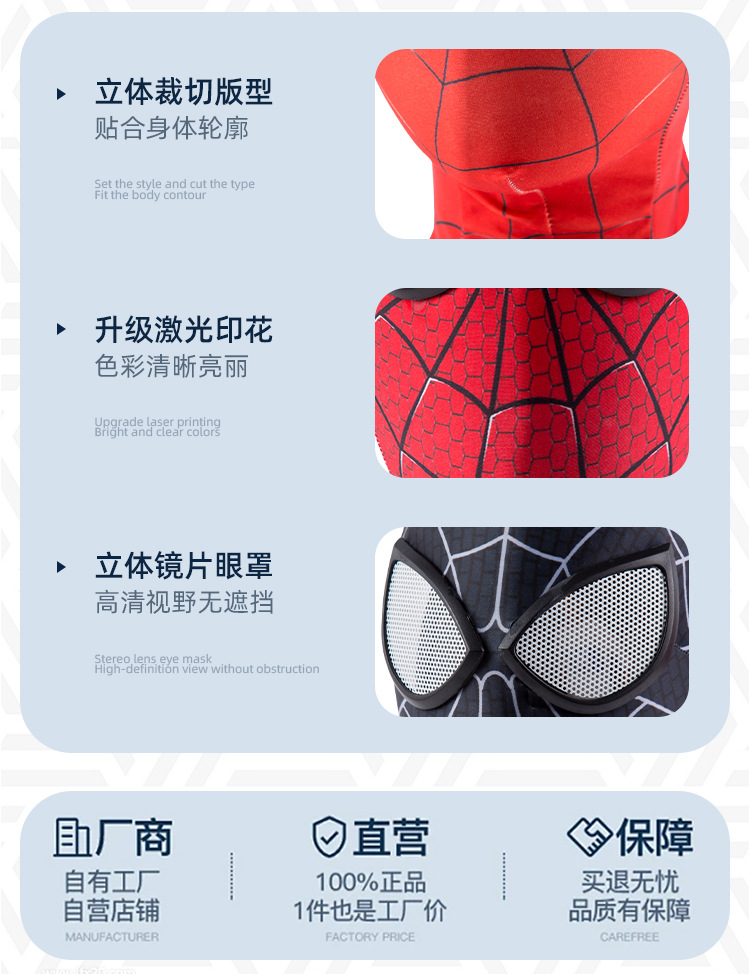 クロスボーダーの人気スパイダーマンのレオタードの半分は頭が抜けています。
