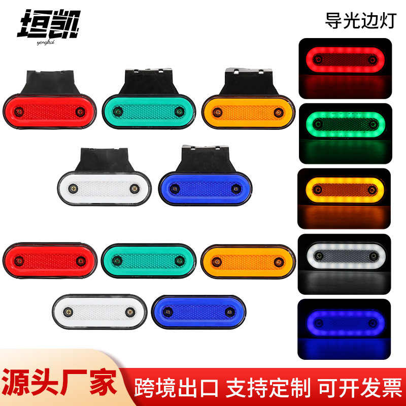 跨境厂家12V24VLED导光边灯 带支架货车卡车彩色椭圆警示边灯尾灯