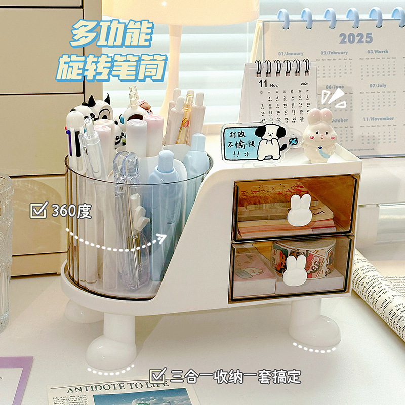 360度回転筆筒オフィスデスクトップ多機能文房具収納ケース小学生大容量デスク収納ケース