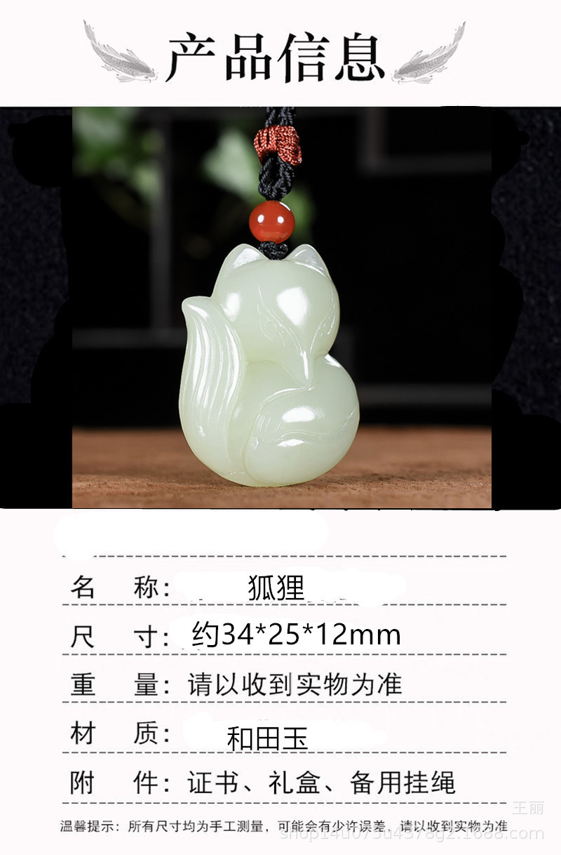 天然和田玉狐ペンダント女性玉ネックレス桃花ペンダント玉佩立体ペンダントから親友プレゼント