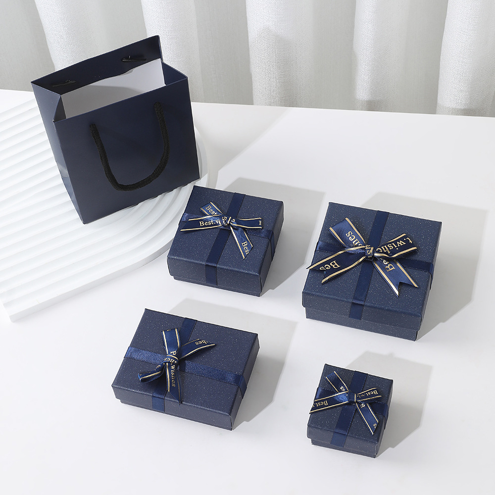 在庫あり 青い蝶結びジュエリーボックス イヤリング ネックレス ブレスレット 上蓋付き ホリデー ジュエリー ギフト包装箱 アクセサリー