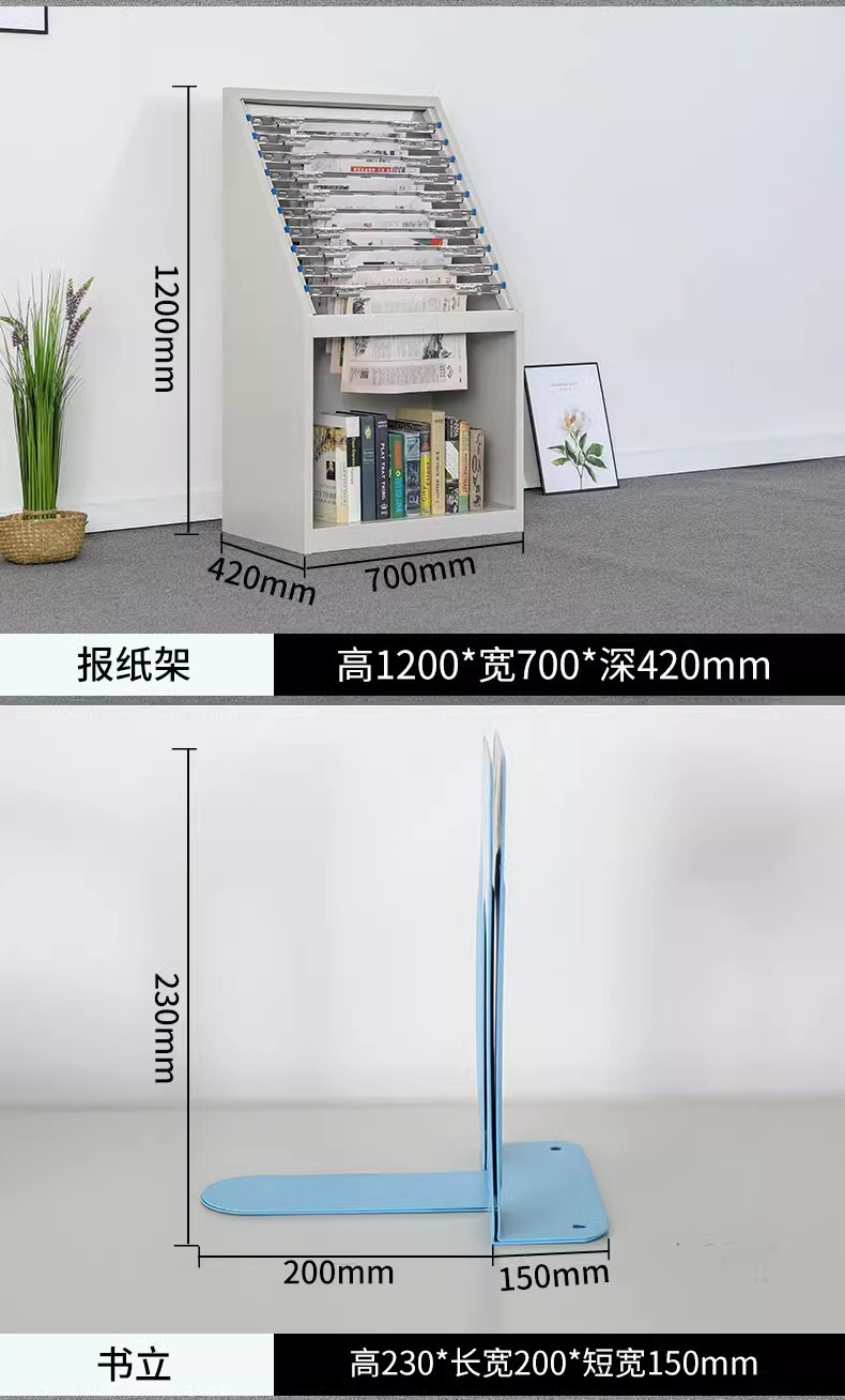 鋼製定期刊行物棚事務室資料ファイル棚デパート新聞閲覧宣伝棚図書館銀行展示棚