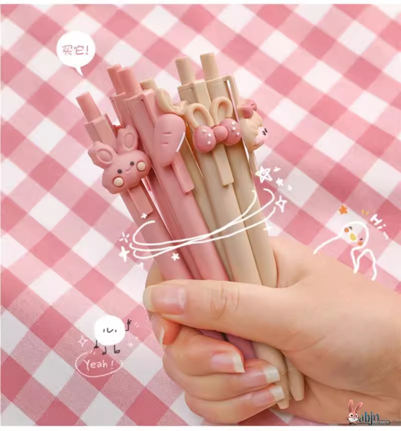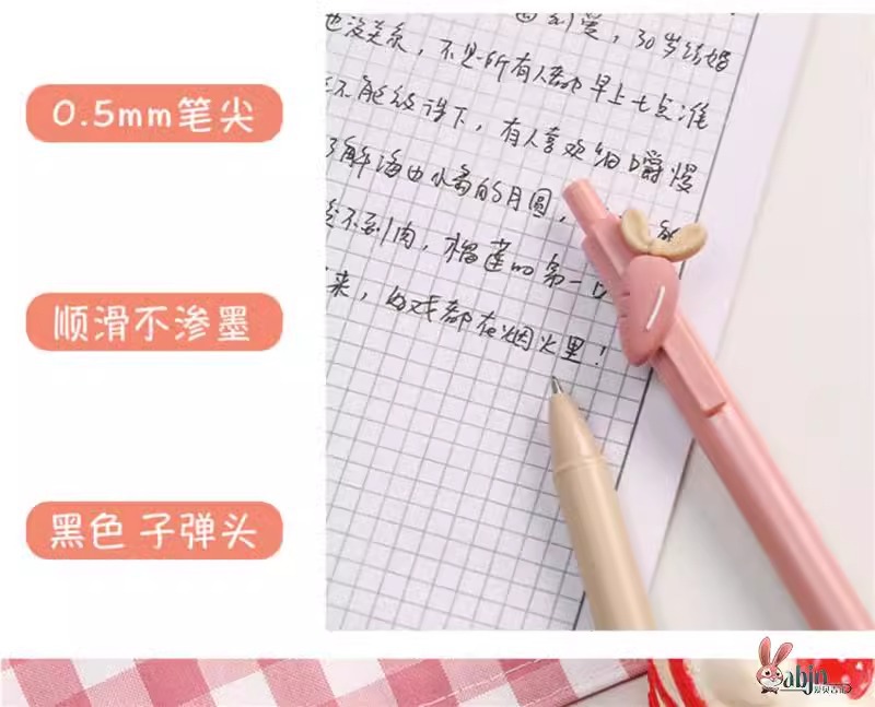 かわいいウサギの女の子がペンins高颜値学生少女がペンを押している韓国版黒0.5中性水筆