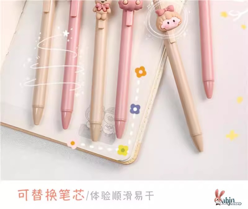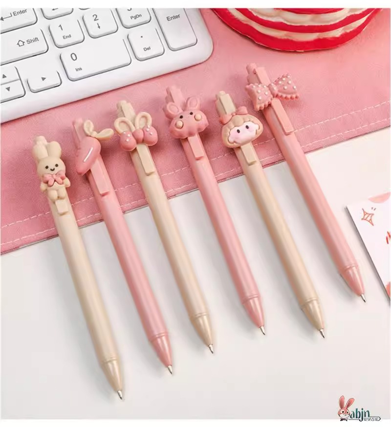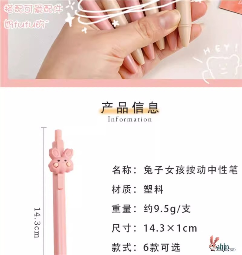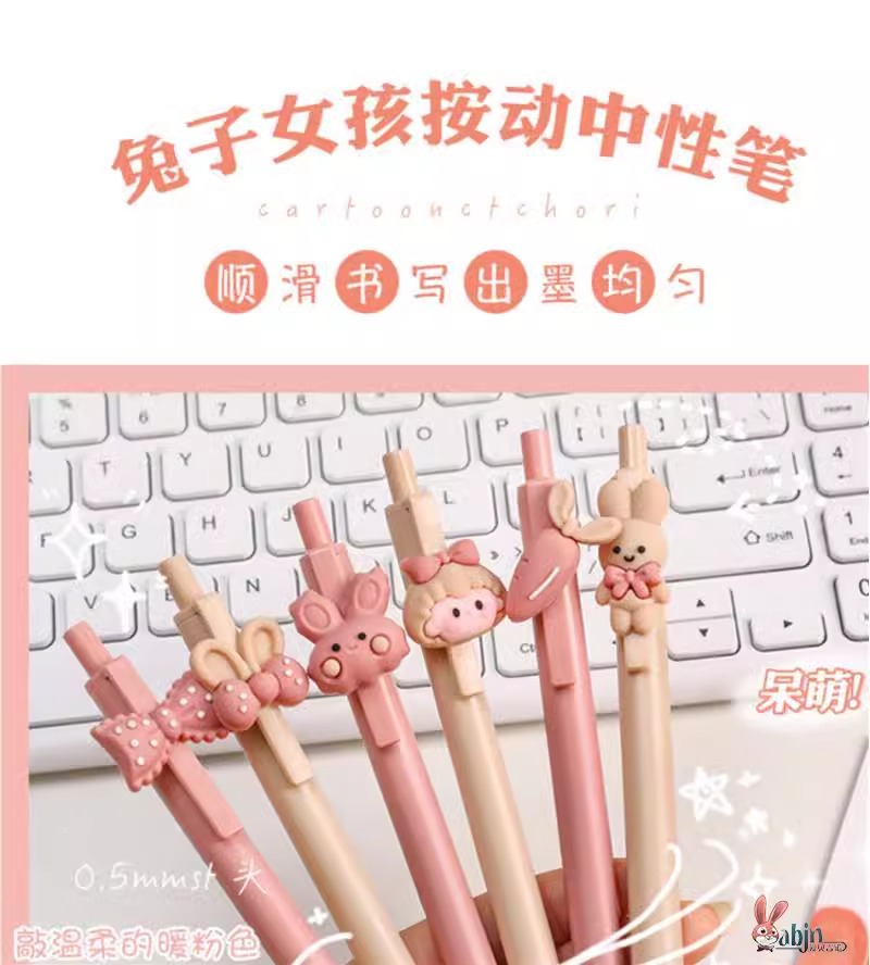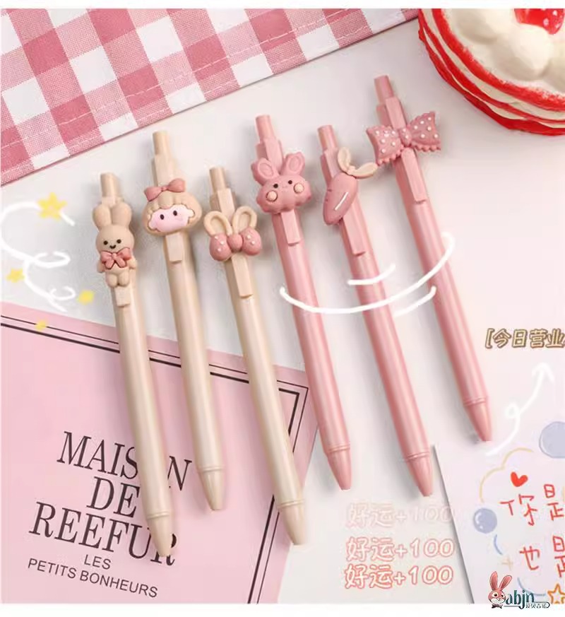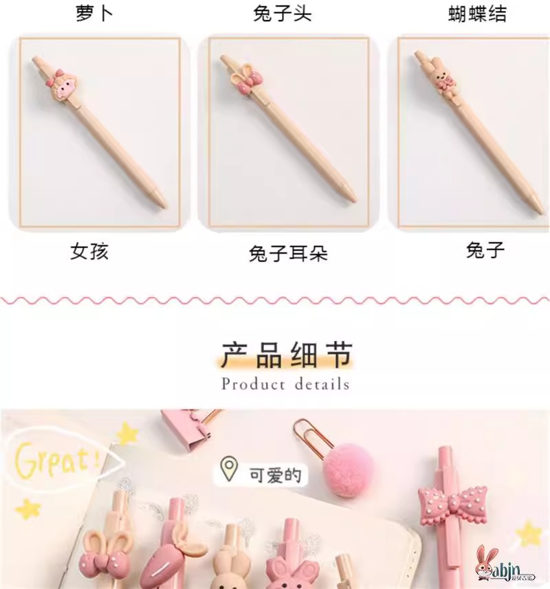 可爱女孩兔子按动笔高颜值立体卡通按动中性笔0.5mm学生按压水笔