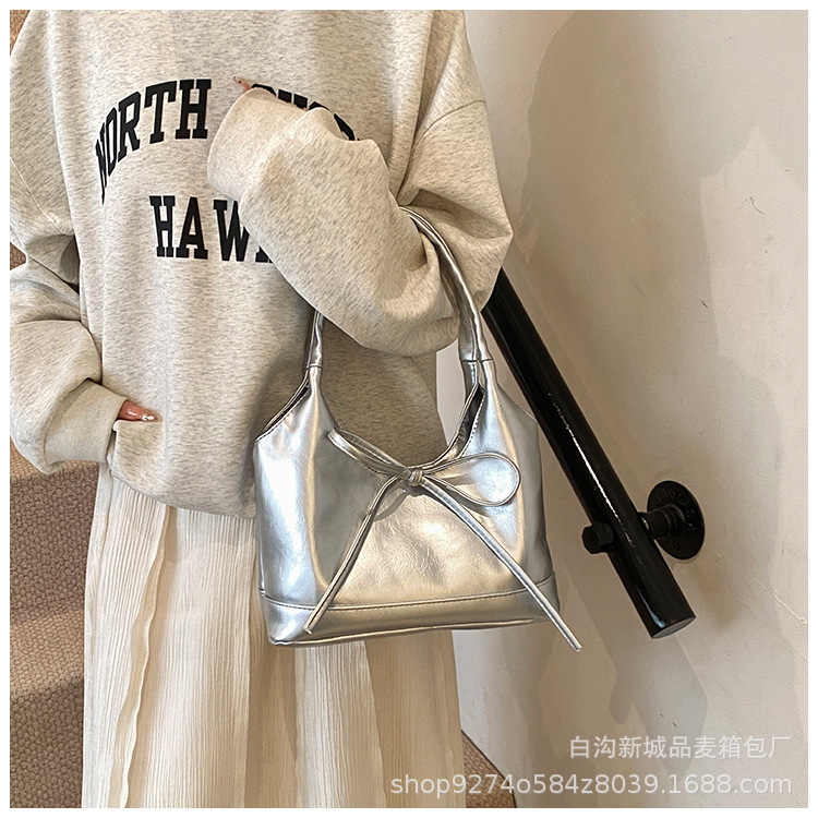 夏のファッションシンプルな小さなバッグレディースバッグ2025新しいトレンディな高品質の脇の下バッグインターネットセレブ人気のバゲットバッグ