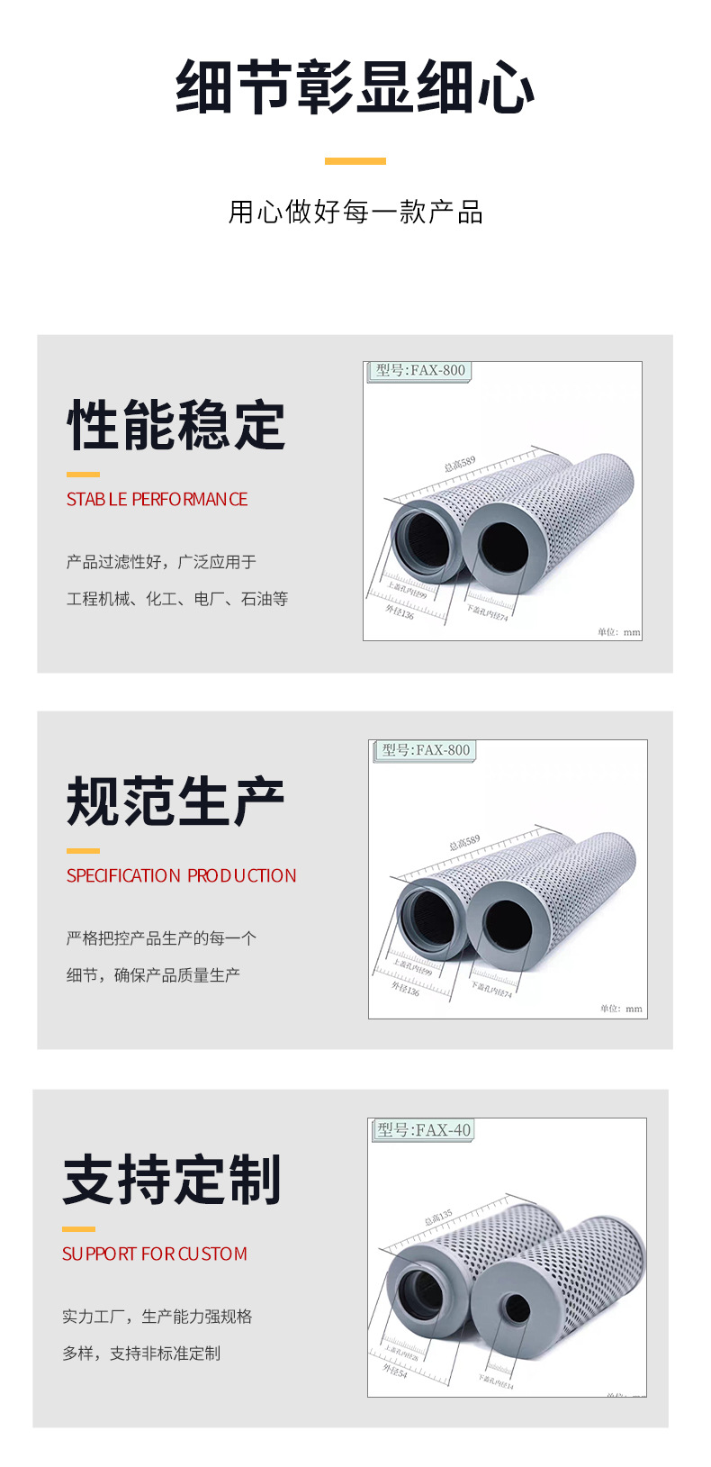 作動油エレメントFAXシリーズはFAX-400*10 WU160x100油圧エレメント作動油を供給する