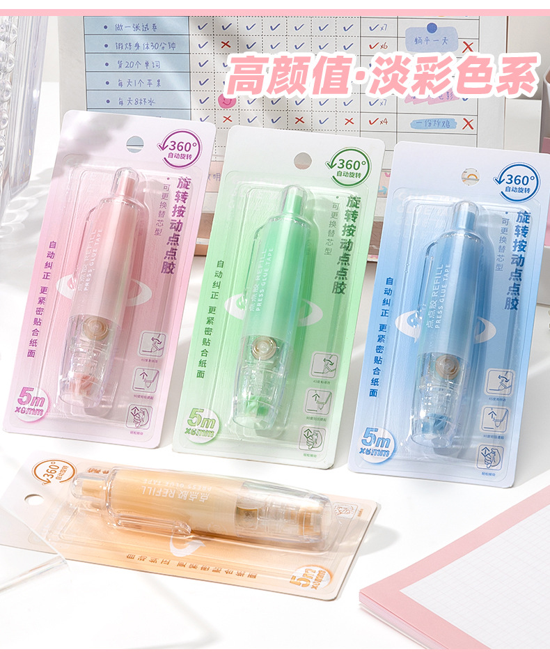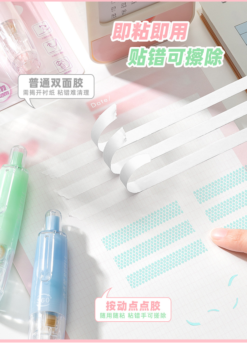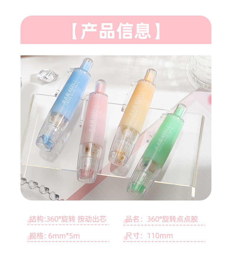 押して点糊修正テープ式点糊ペン強力点状無痕透明テープ子供手作業高粘度