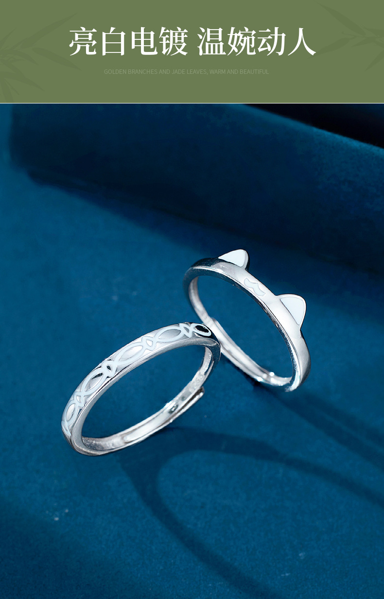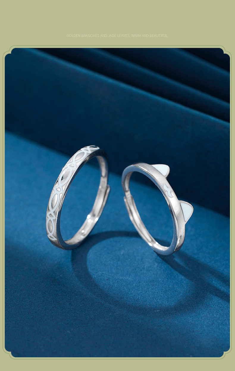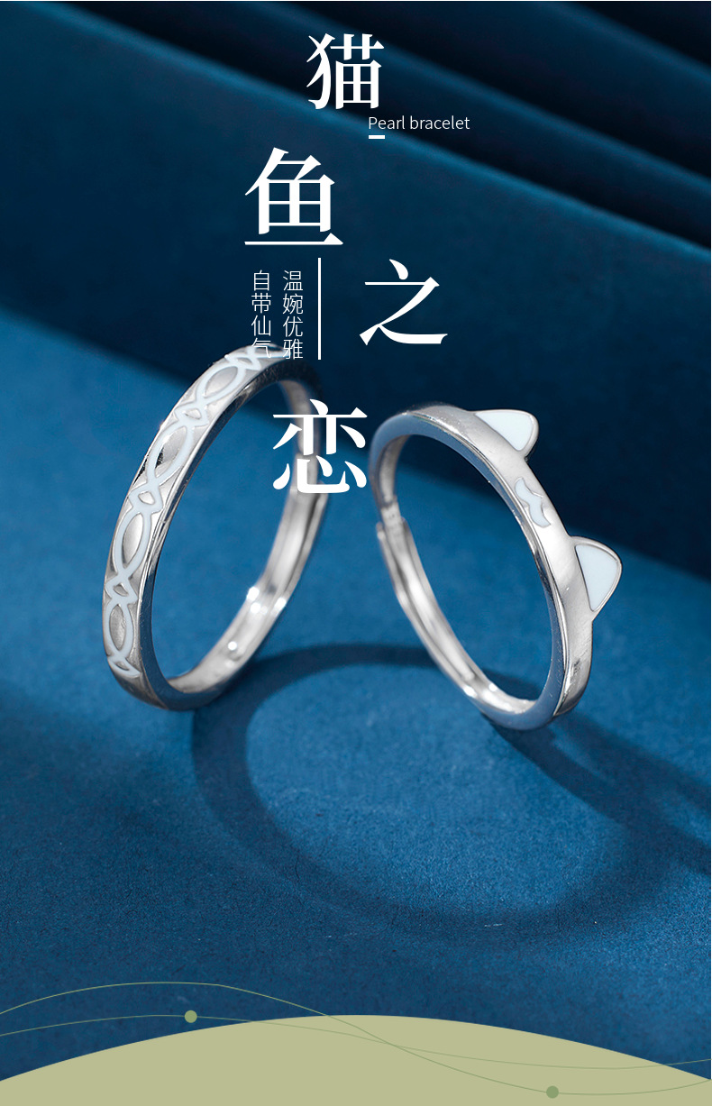 S925猫魚の恋カップルペアリング蛍光指輪百合シンプル高級感小衆ファッション小清新ペアリング