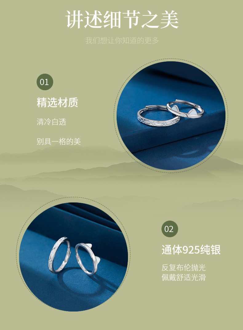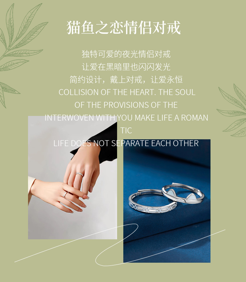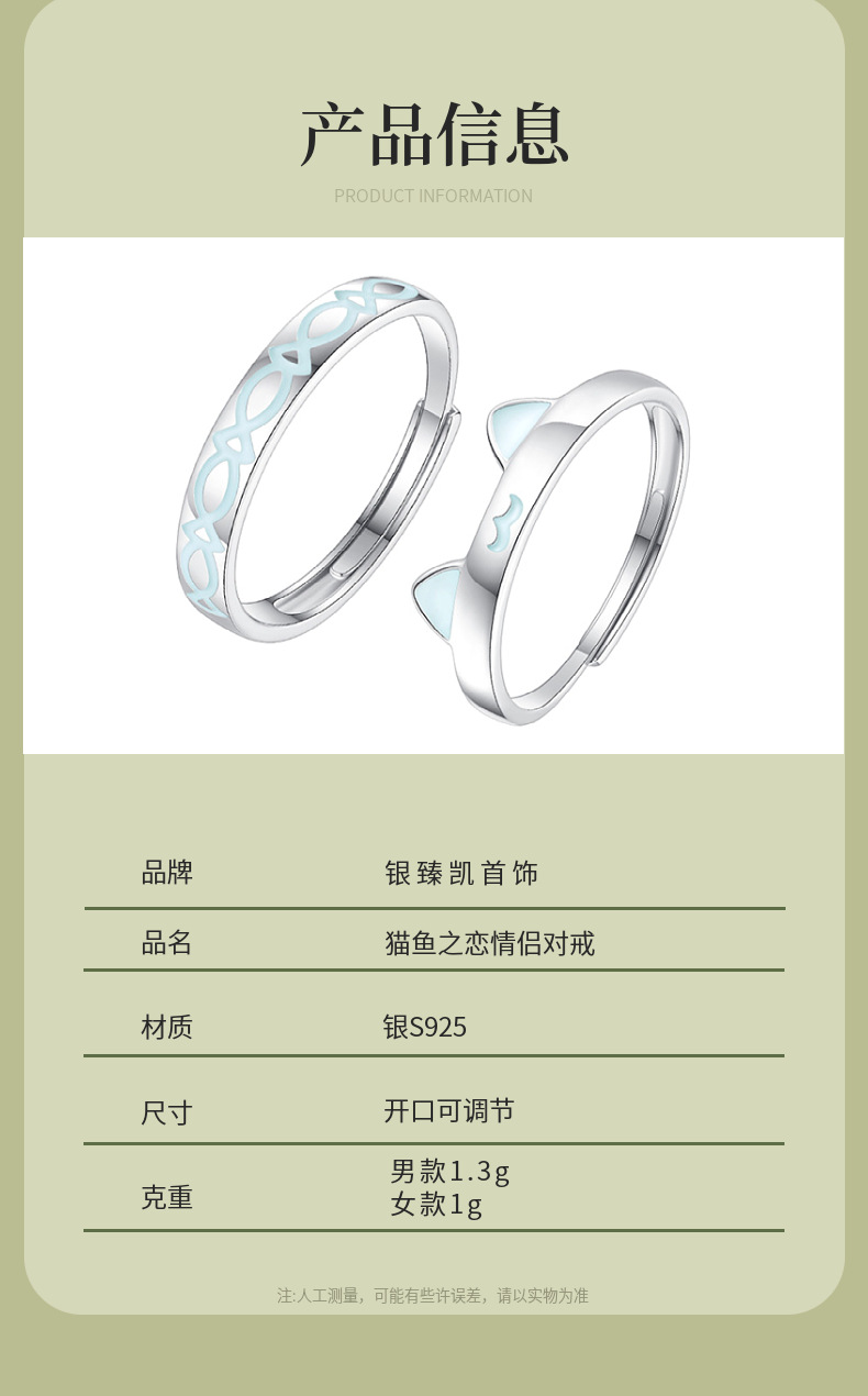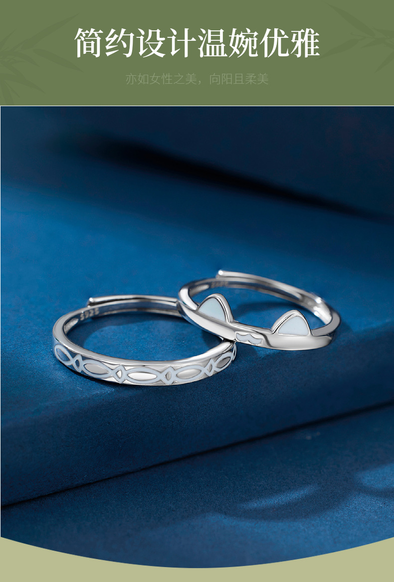 S925猫魚の恋カップルペアリング蛍光指輪百合シンプル高級感小衆ファッション小清新ペアリング
