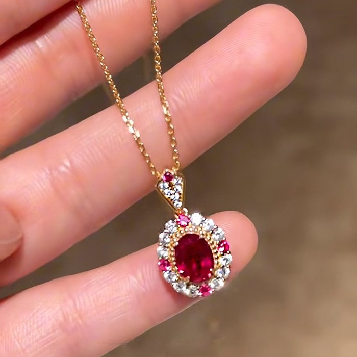 軽くて豪華な気質の鳩の卵のバラの赤い宝石の指輪の高級感の赤いコランダムのジェダイの武士のペンダントのネックレスのスーツの女性