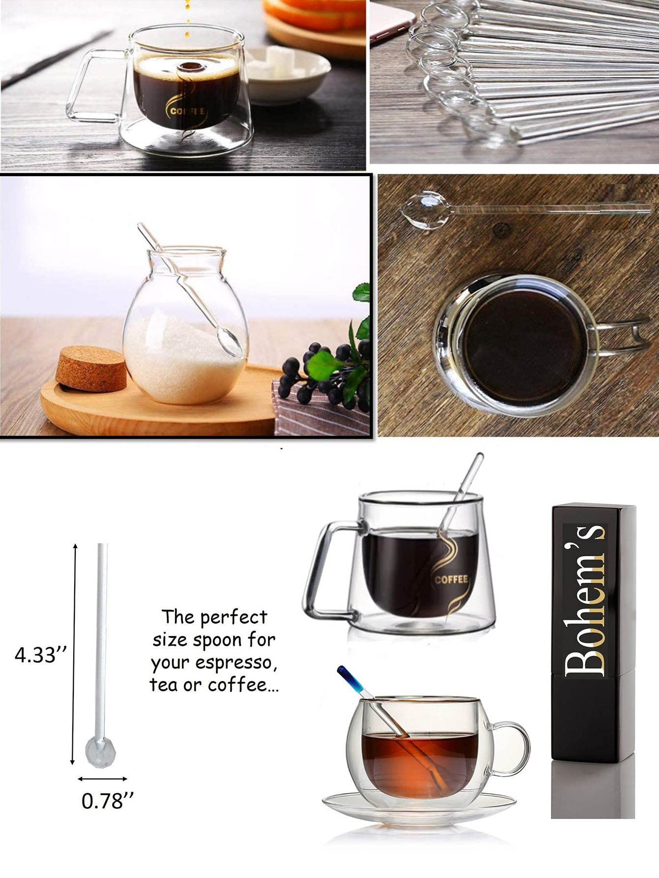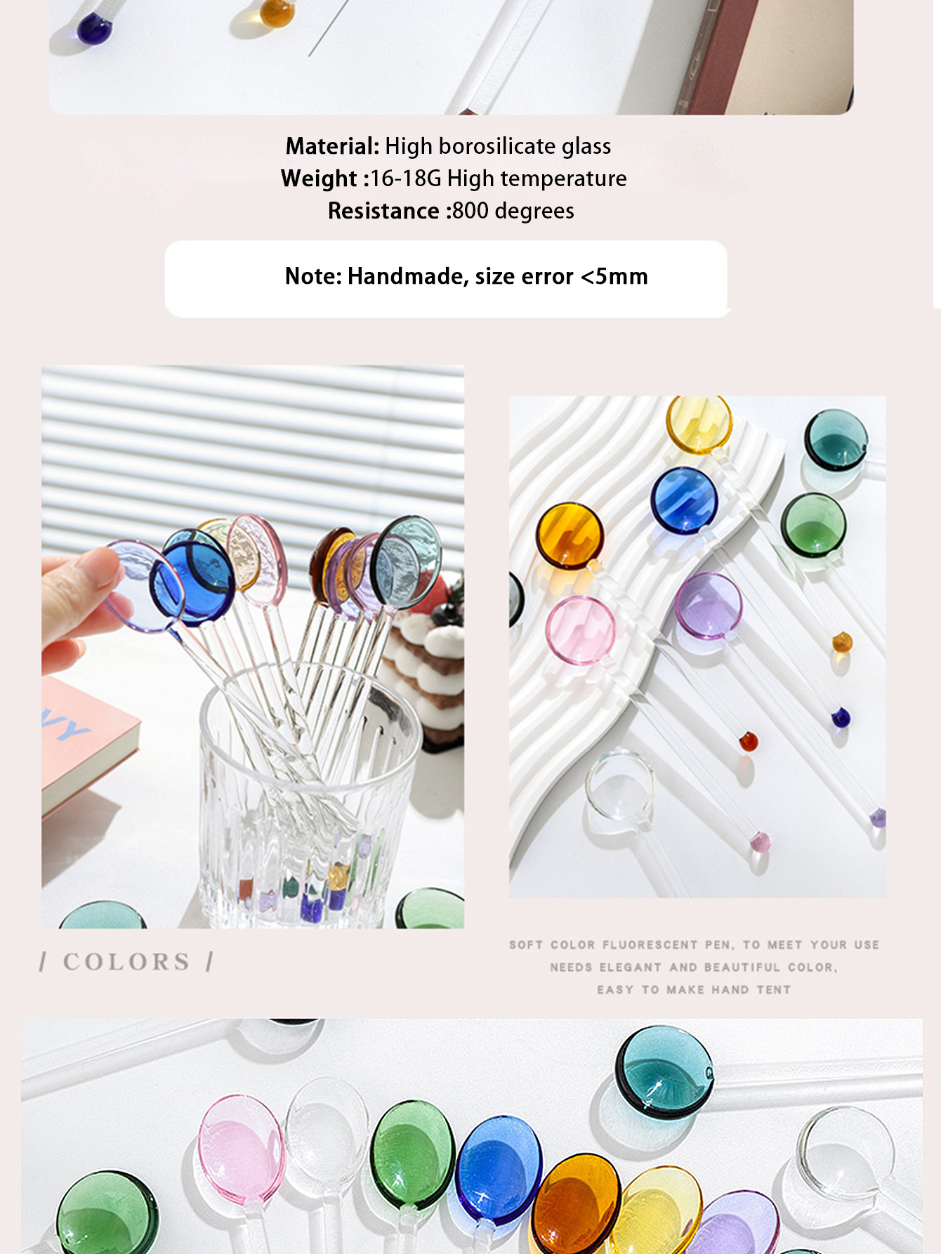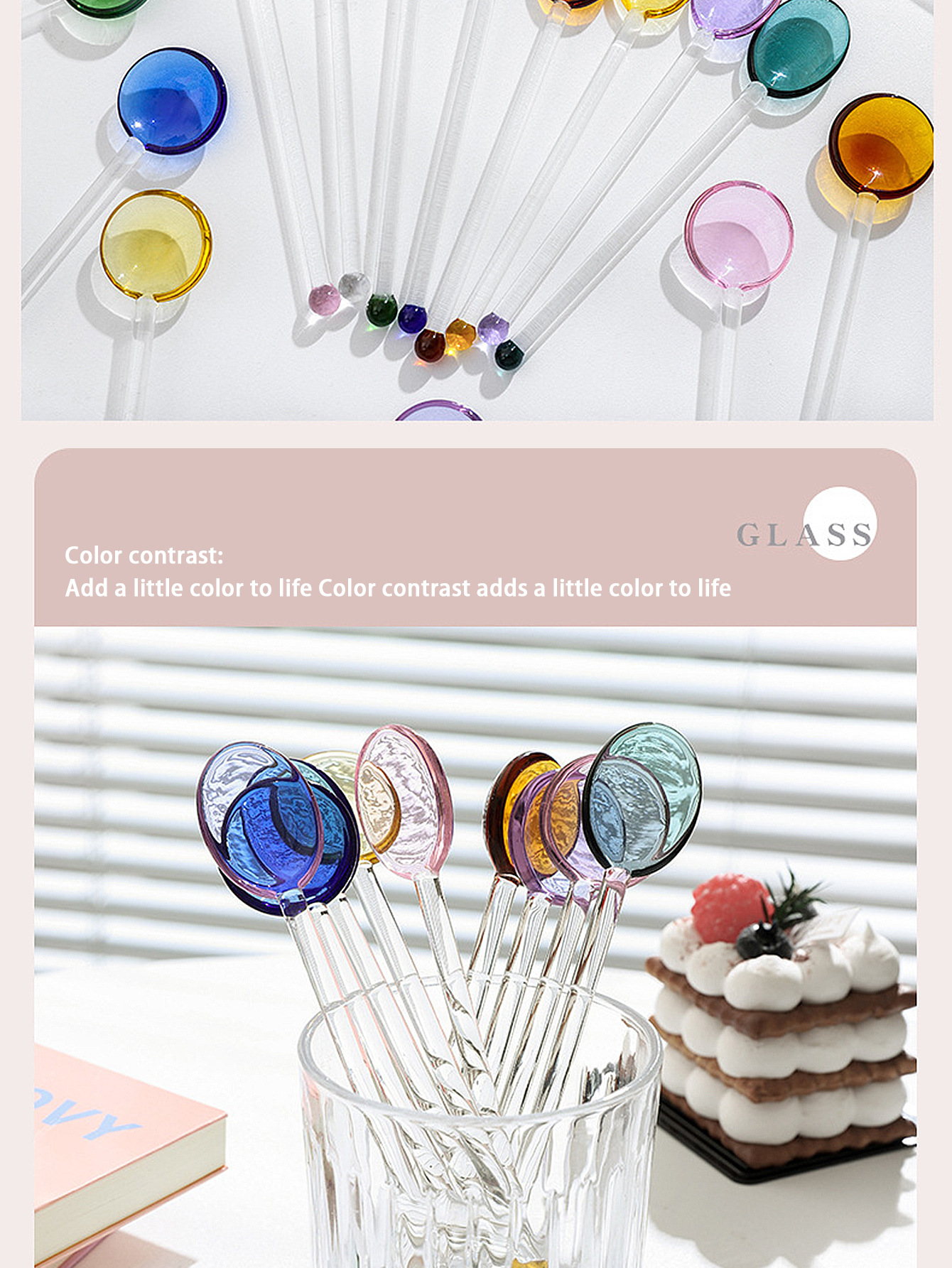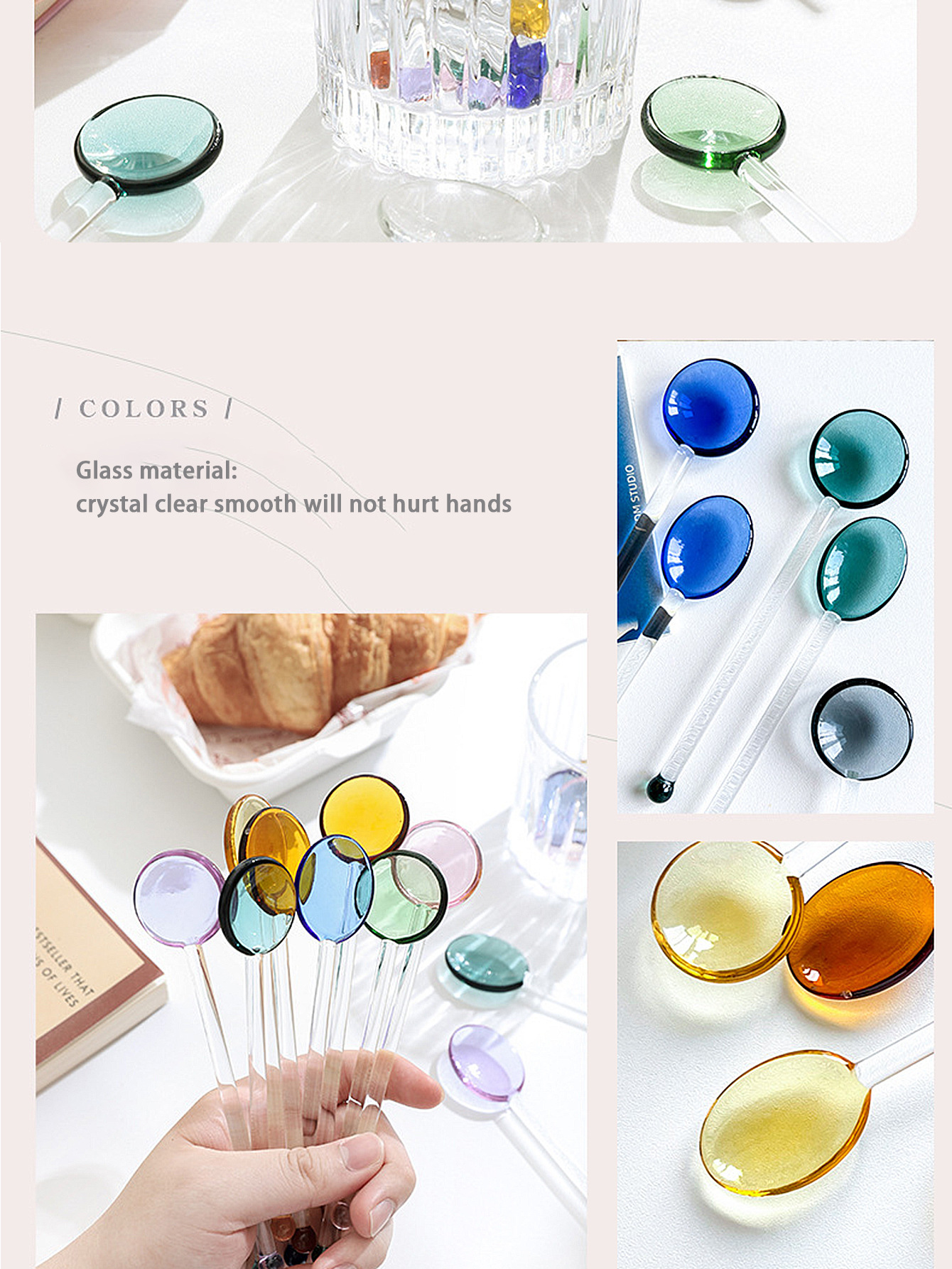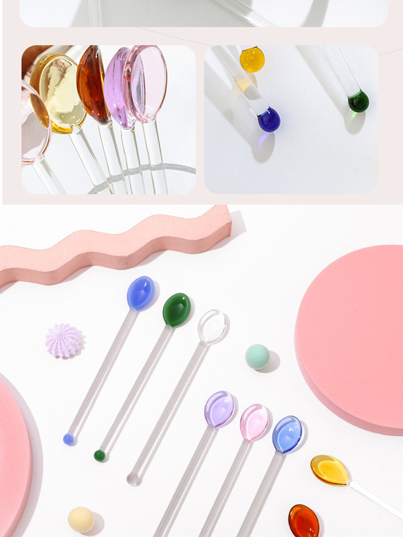 アマゾンクロスボーダー起爆ガラススプーン多彩なガラスコーヒー攪拌棒かわいいクリエイティブ長柄ジュースコーヒースプーン