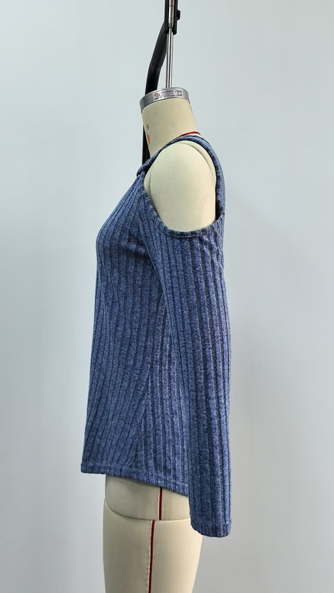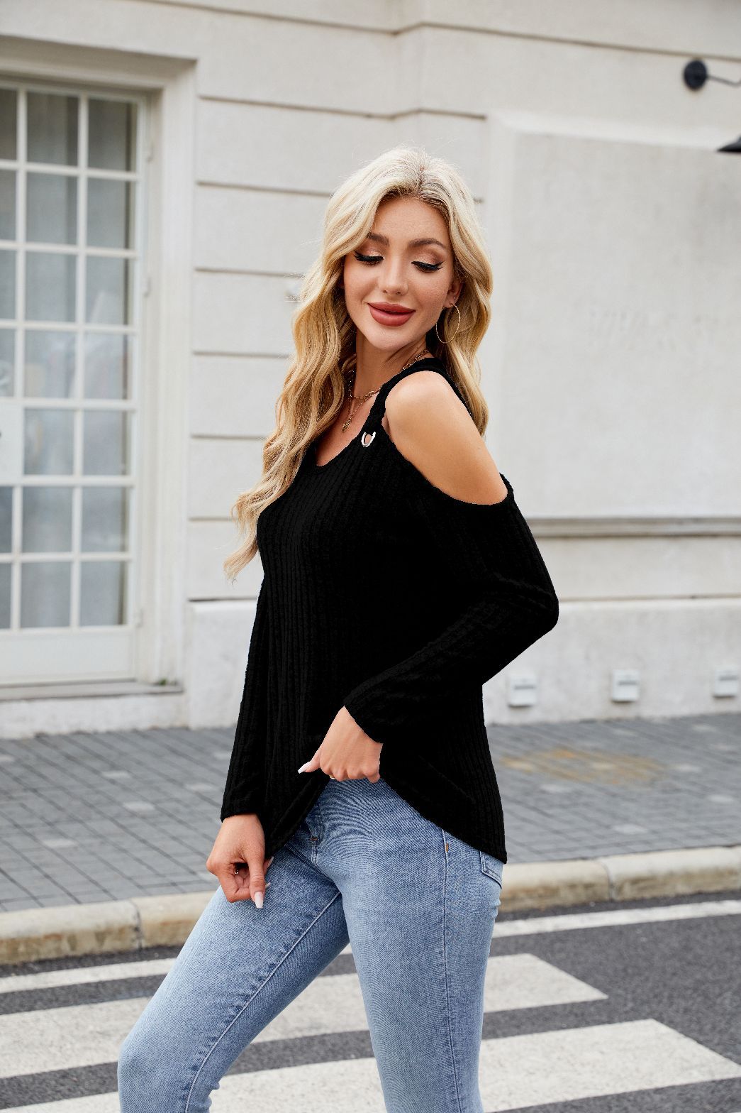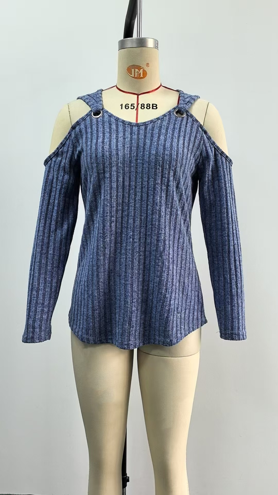 亚马逊跨境欧美外贸2025新款女装秋冬爆款针织上衣时尚露肩T恤女