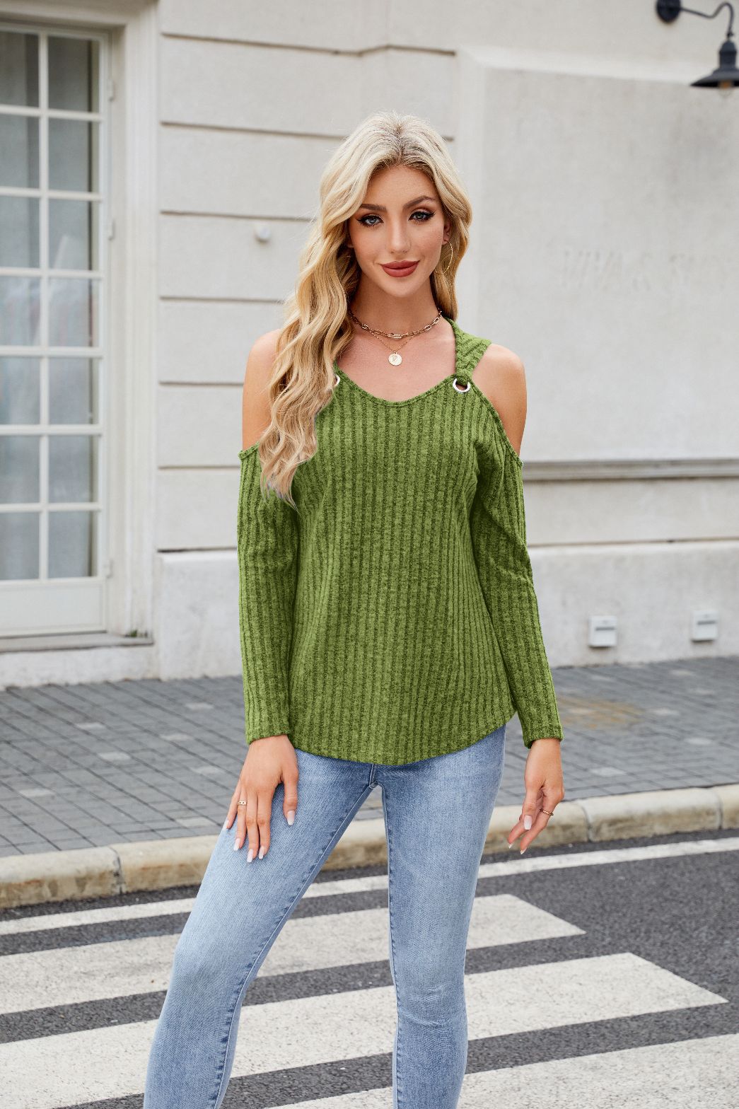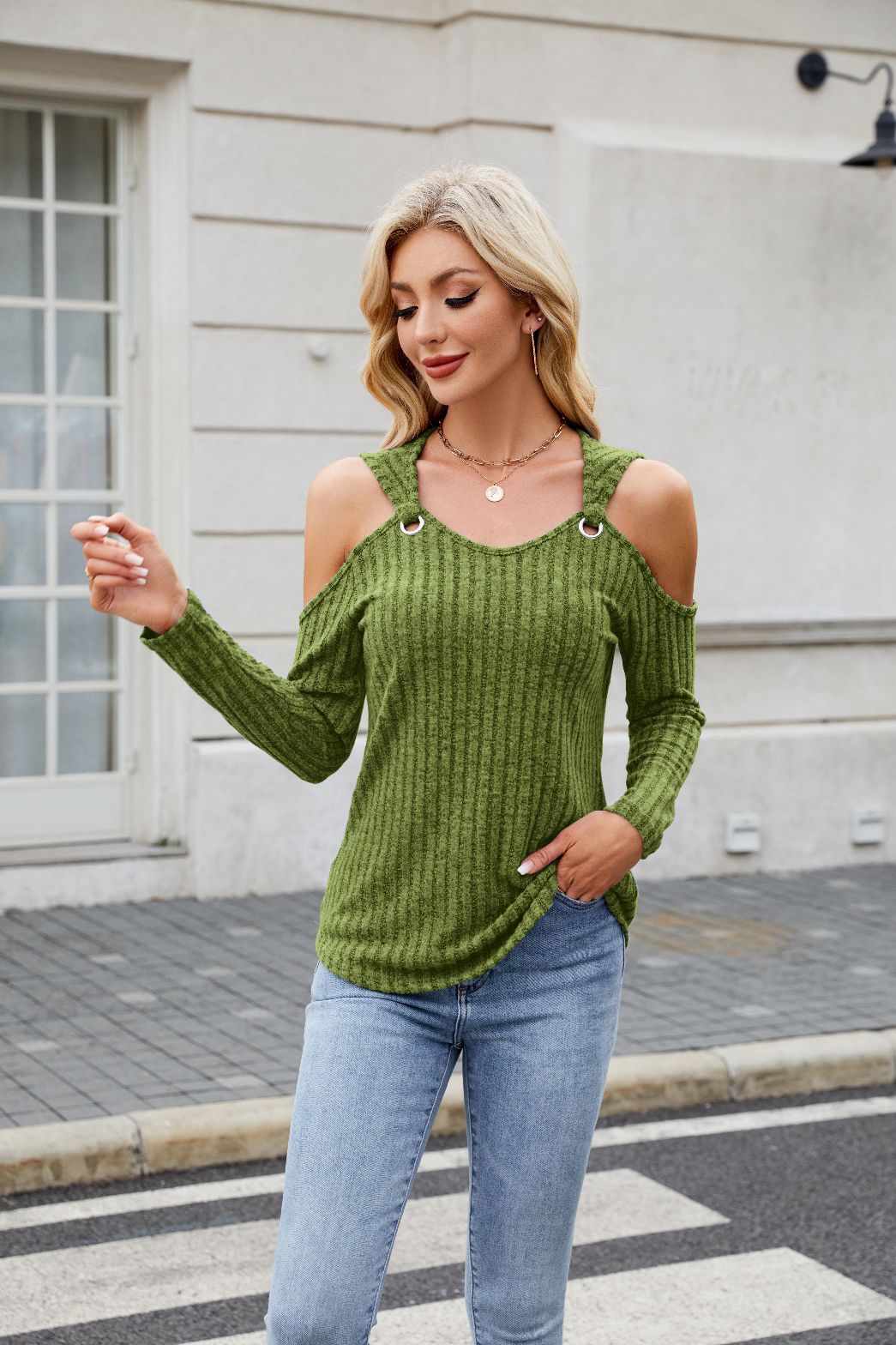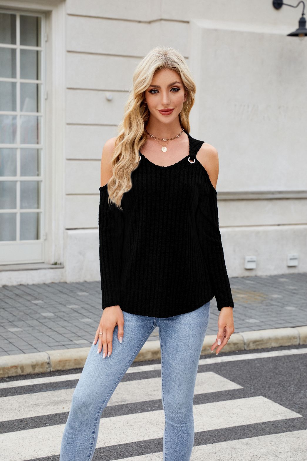 亚马逊跨境欧美外贸2025新款女装秋冬爆款针织上衣时尚露肩T恤女