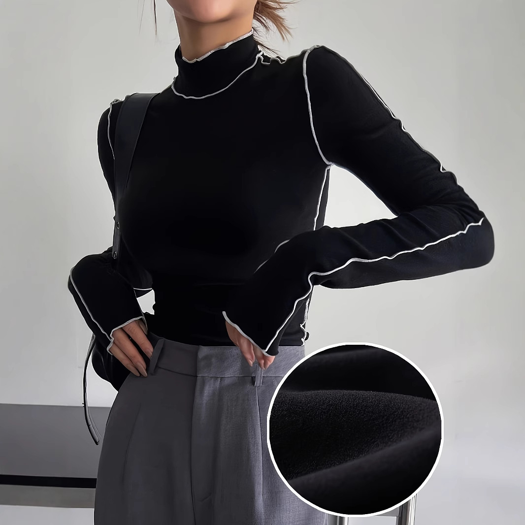 秋の新作ファッションカジュアルスリムフィットハーフタートルネックインナーウェア、フリル付きニット高伸縮性Tシャツトップス