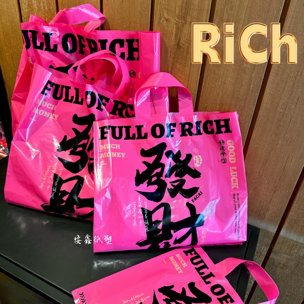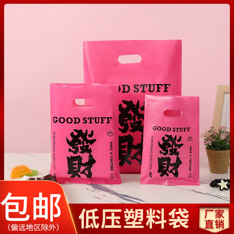 手提塑料袋可爱卡通玫红色发财字样塑料购物袋塑料背心袋批量制作