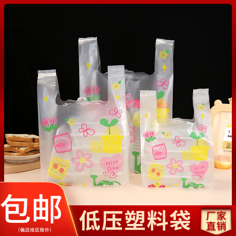 ビニール袋ローズレッドベストバッグコンビニポータブルショッピングバッグかわいい漫画ポータブルビニール袋包装袋