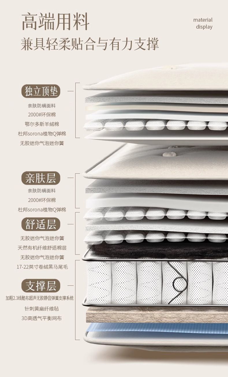 佛山手工床垫羊毛驼绒无胶水双层mini弹簧马毛独立袋装弹簧床垫