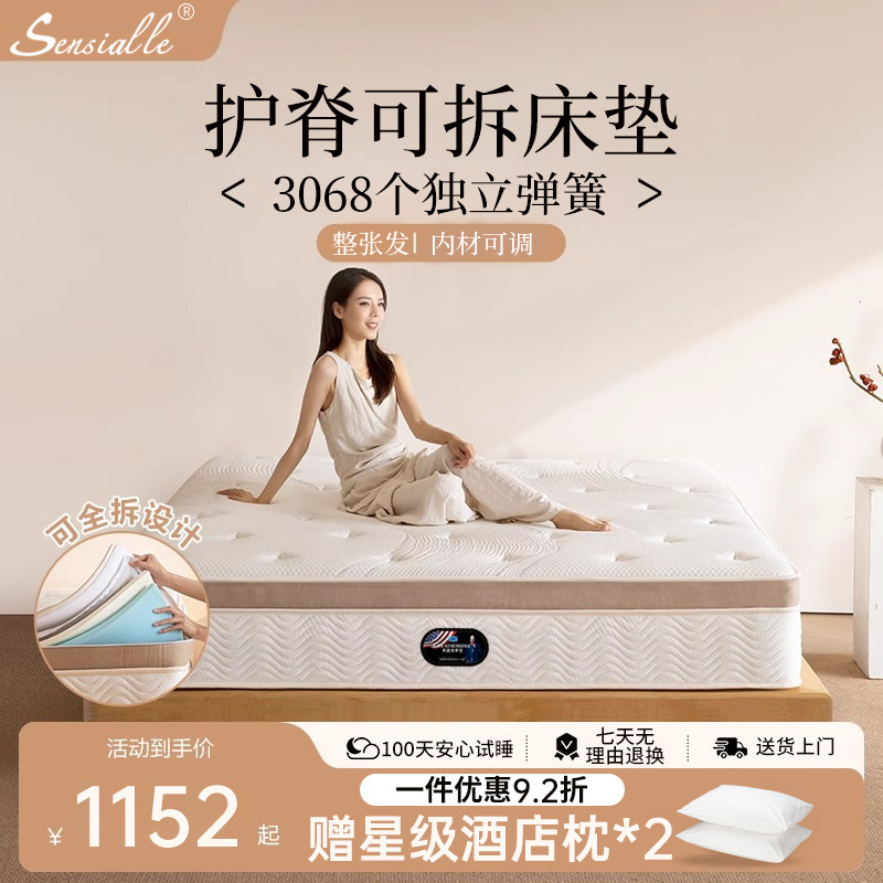 SLEEP席夢思KNIGHTは全分解マットレス独立スプリングラテックス硬パッド天然黄麻家庭用