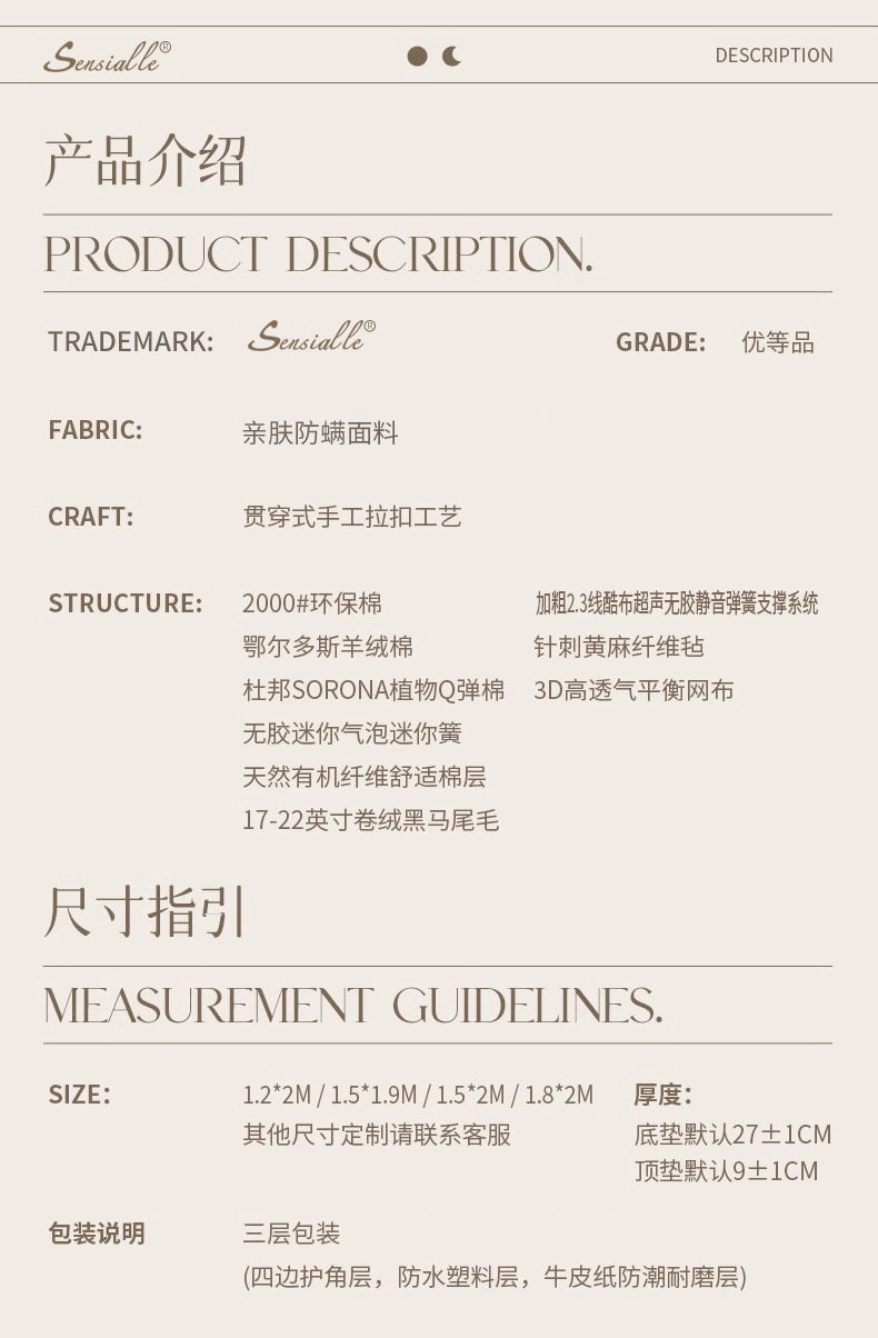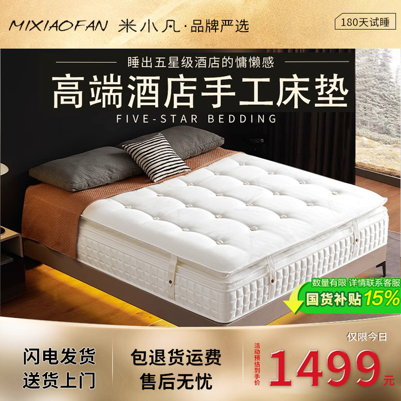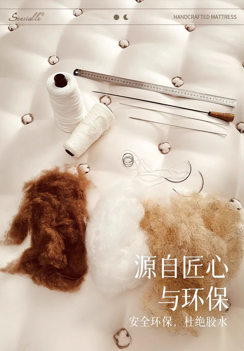 马尾毛纯手工床垫拉扣无胶水天然独立袋弹簧床垫五星级酒店软床垫