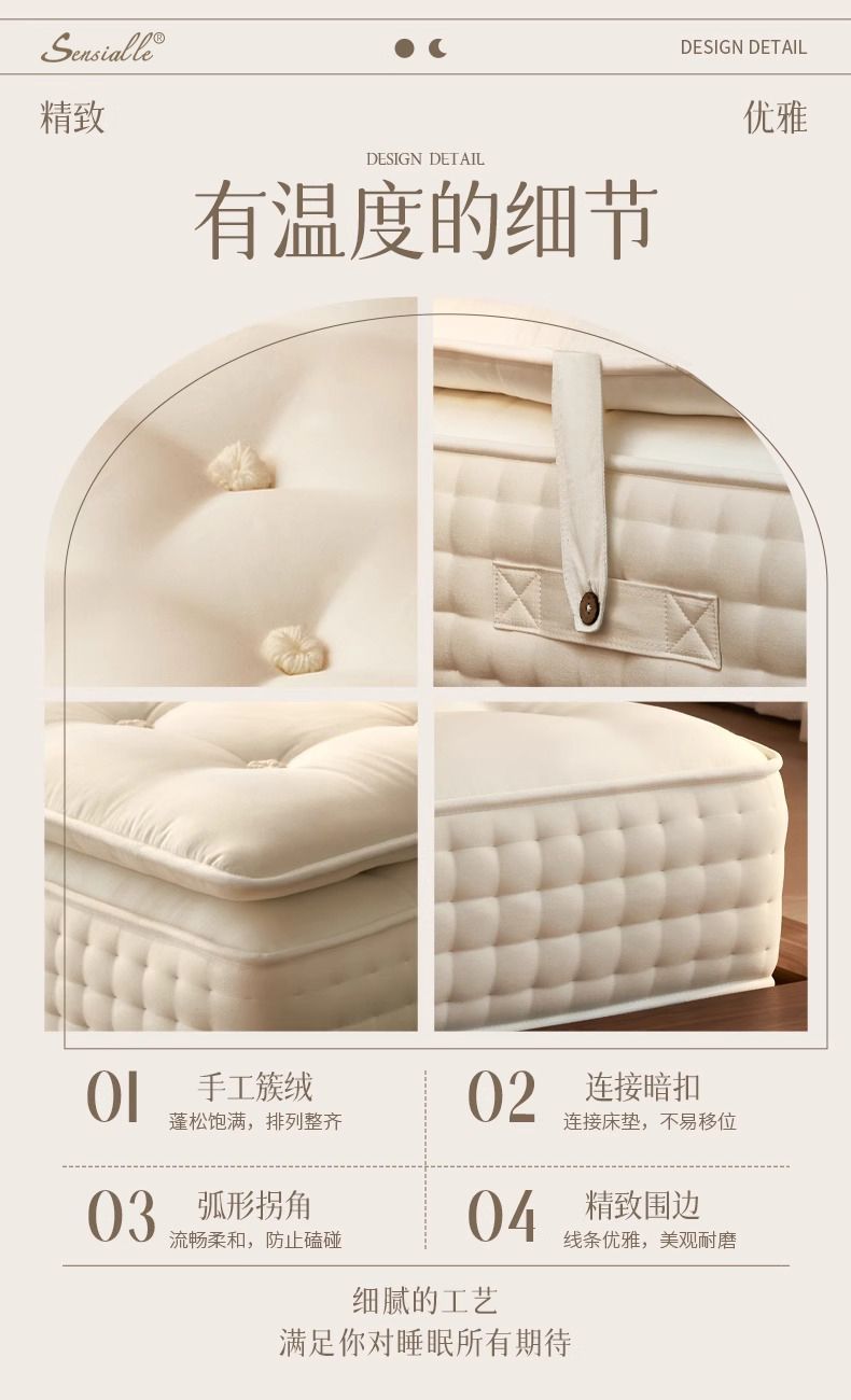 手作りバックル馬毛マットレス畳夢思天然ウール無ゴム技術独立袋家庭用二重スプリング