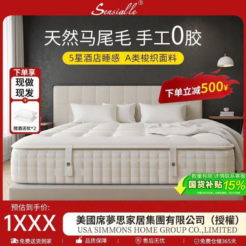 席夢思馬尾毛手引きマットレスウールトップマット二重接着剤なしスプリング寝室家庭用クッション