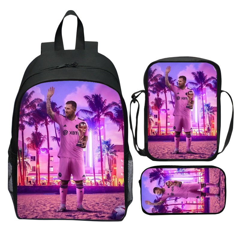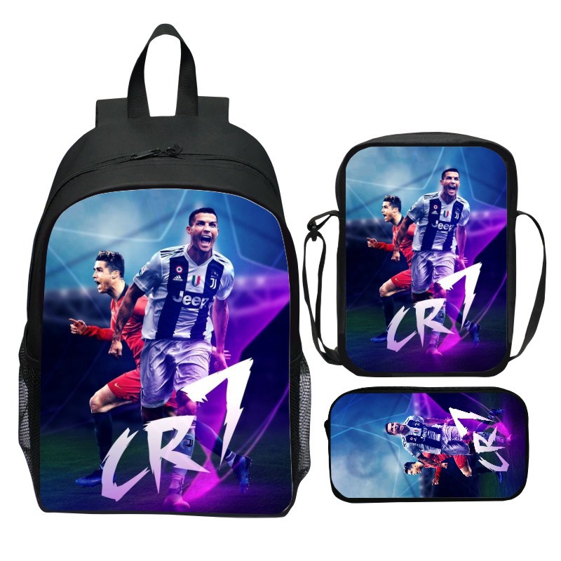 新品プリントサッカースター三点セットかばんCR7ネマル漫画学生リュックサックショルダーバッグ筆袋男