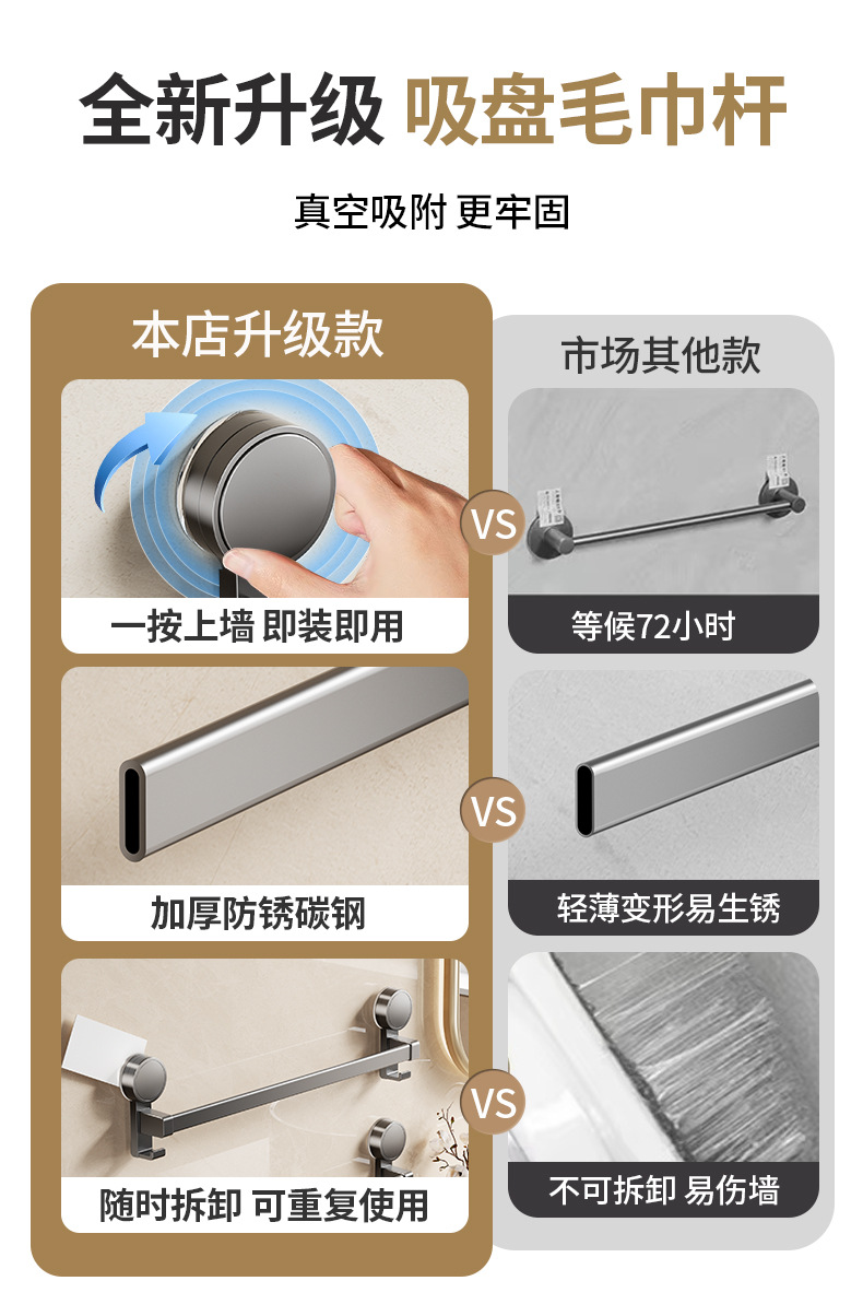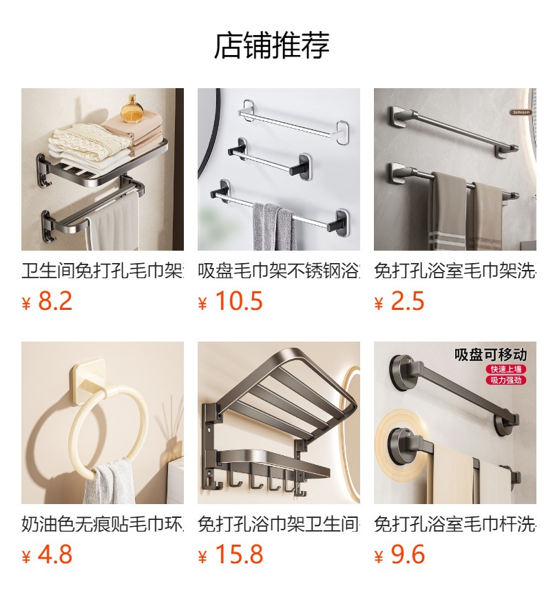 吸盤タオル棚トイレ穴なし壁掛け棚浴室タオル単棒トイレ収納ハンガー