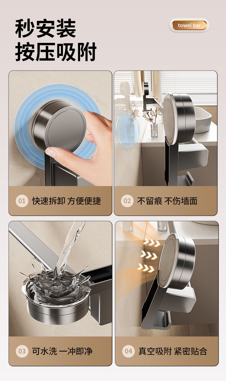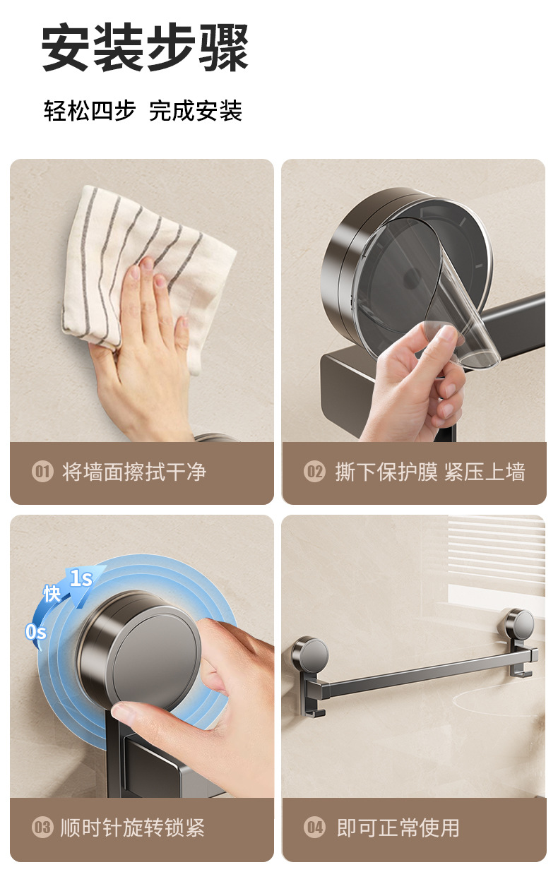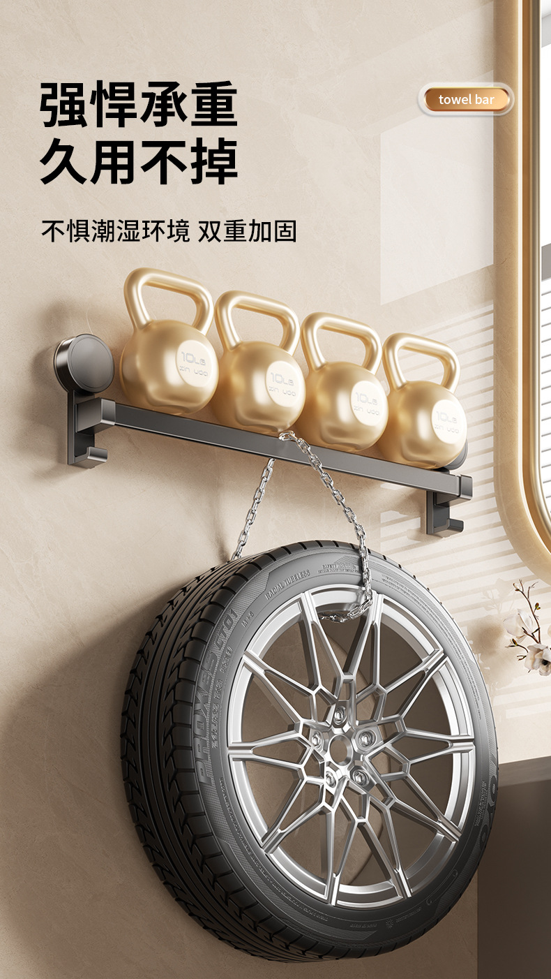 吸盤タオルバートイレ穴なしトイレ浴室壁掛け式二重棒単棒収納棚掛けタオルラック