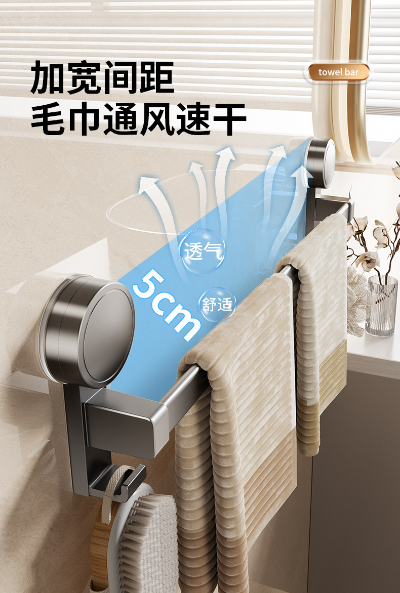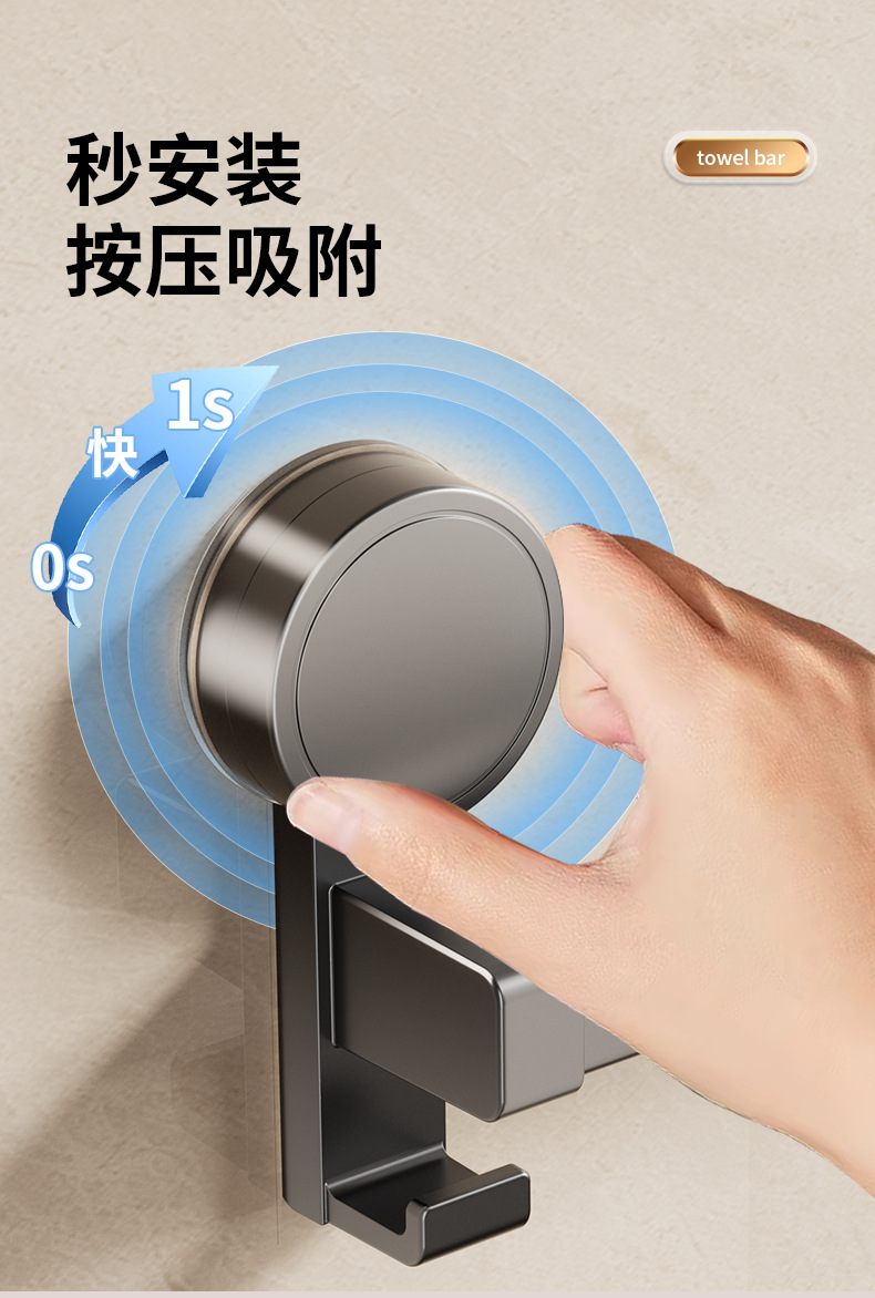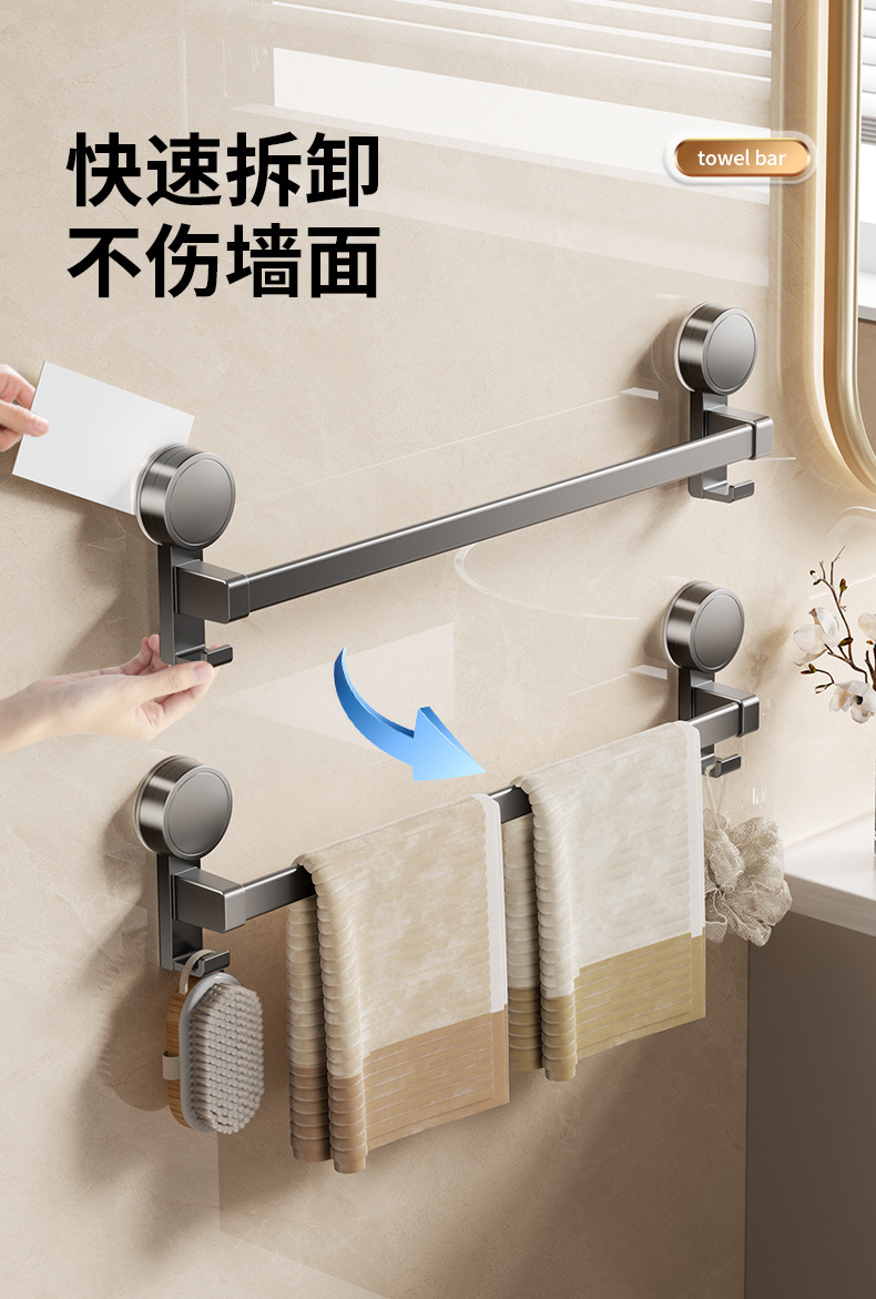 穴を開けない浴室タオル掛け銃灰トイレ壁掛け洗濯タオルフック多機能真空吸盤タオルバー