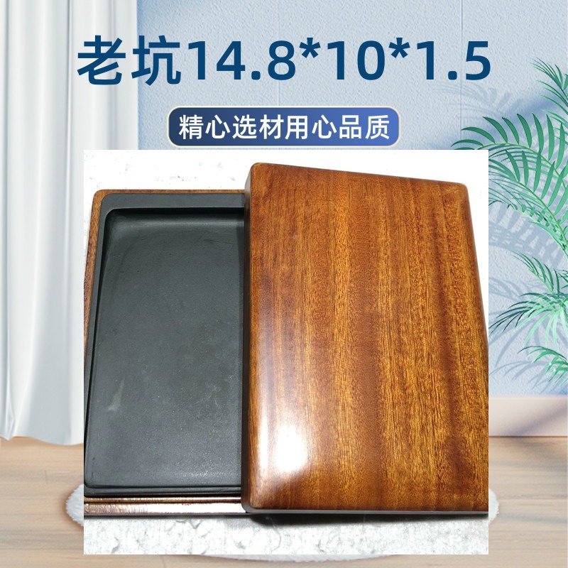 此石取自老坑金星坑金星金晕材料,整个砚石一样的质地与纹理,纯一石肉,玉德金声,发墨很好,能用能藏,配有樟木高档挖盒。