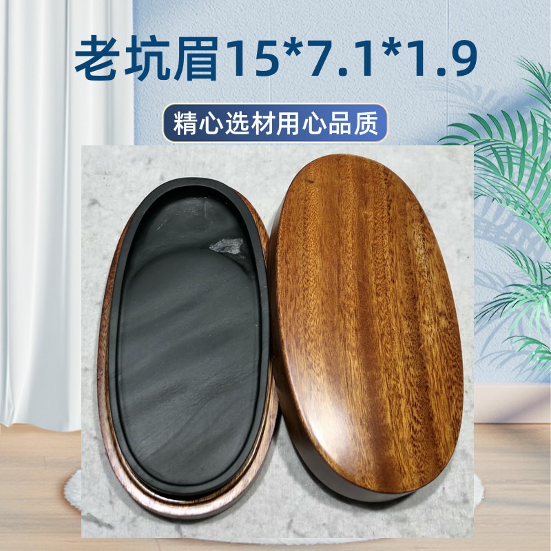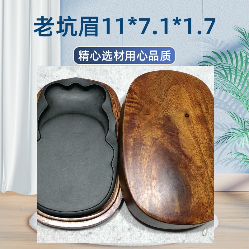 此石取自老坑眉纹坑眉纹材料,整个砚石一样的质地与纹理,纯一石肉,造型古谱,实用优选,能用能藏,配有香樟木挖盒。