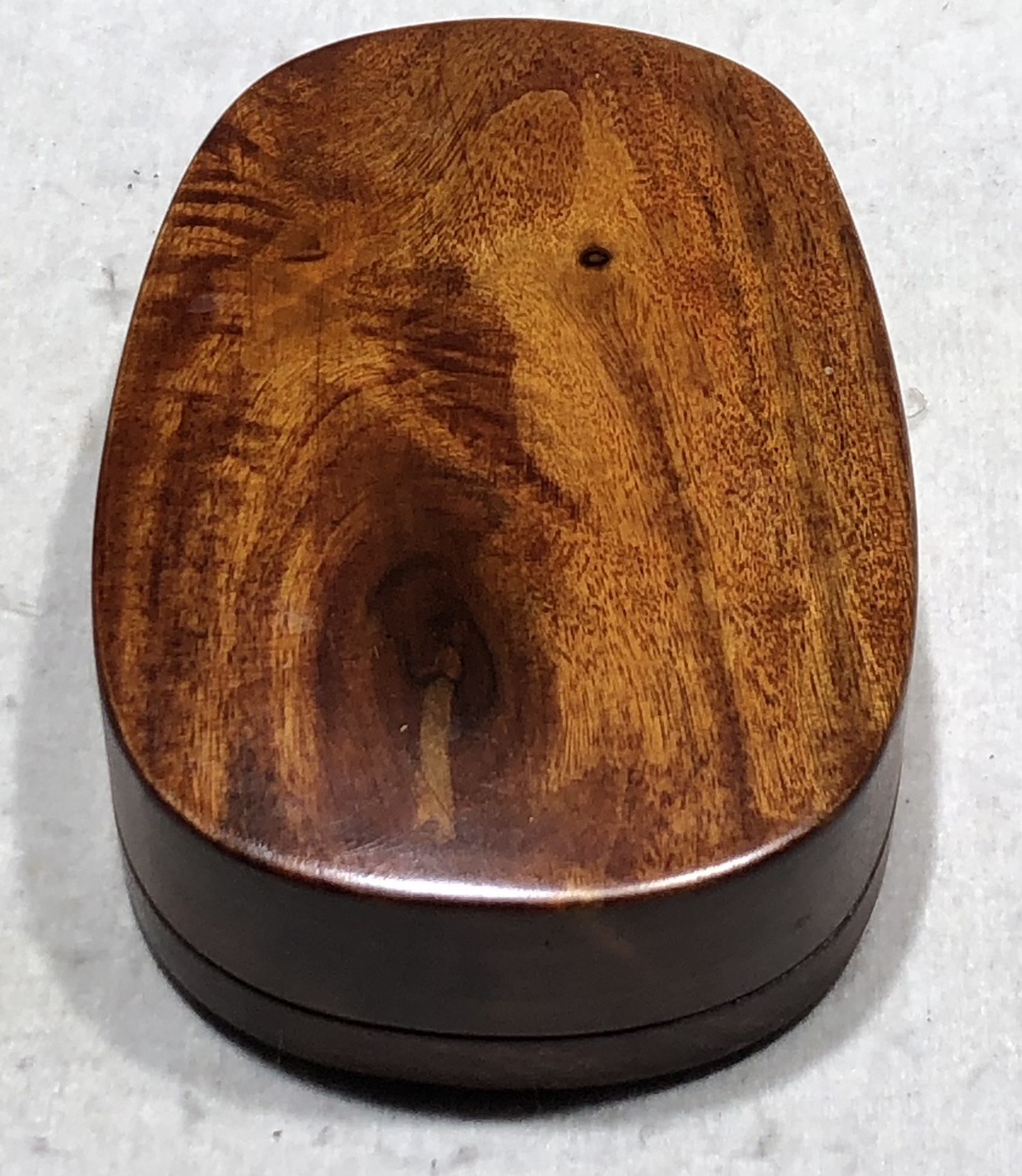 此石取自水蕨坑眉纹材料,整个砚石一样的质地与纹理,纯一石肉,眉纹漂亮质感好,侧面有一白石英,不影响实用,能用能藏,配有香樟木挖盒。