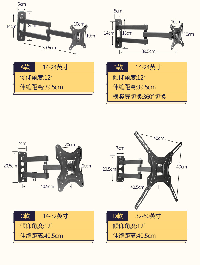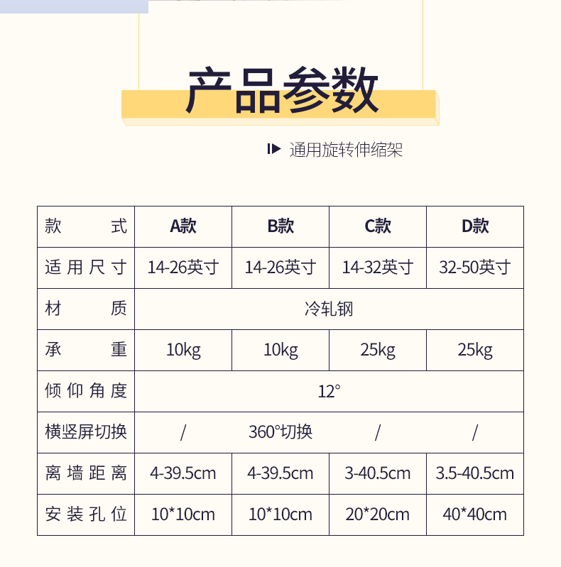 ディスプレイスタンド壁挂けホルダー液晶コンピュータディスプレイハンガーテレビラック12-32インチ棚