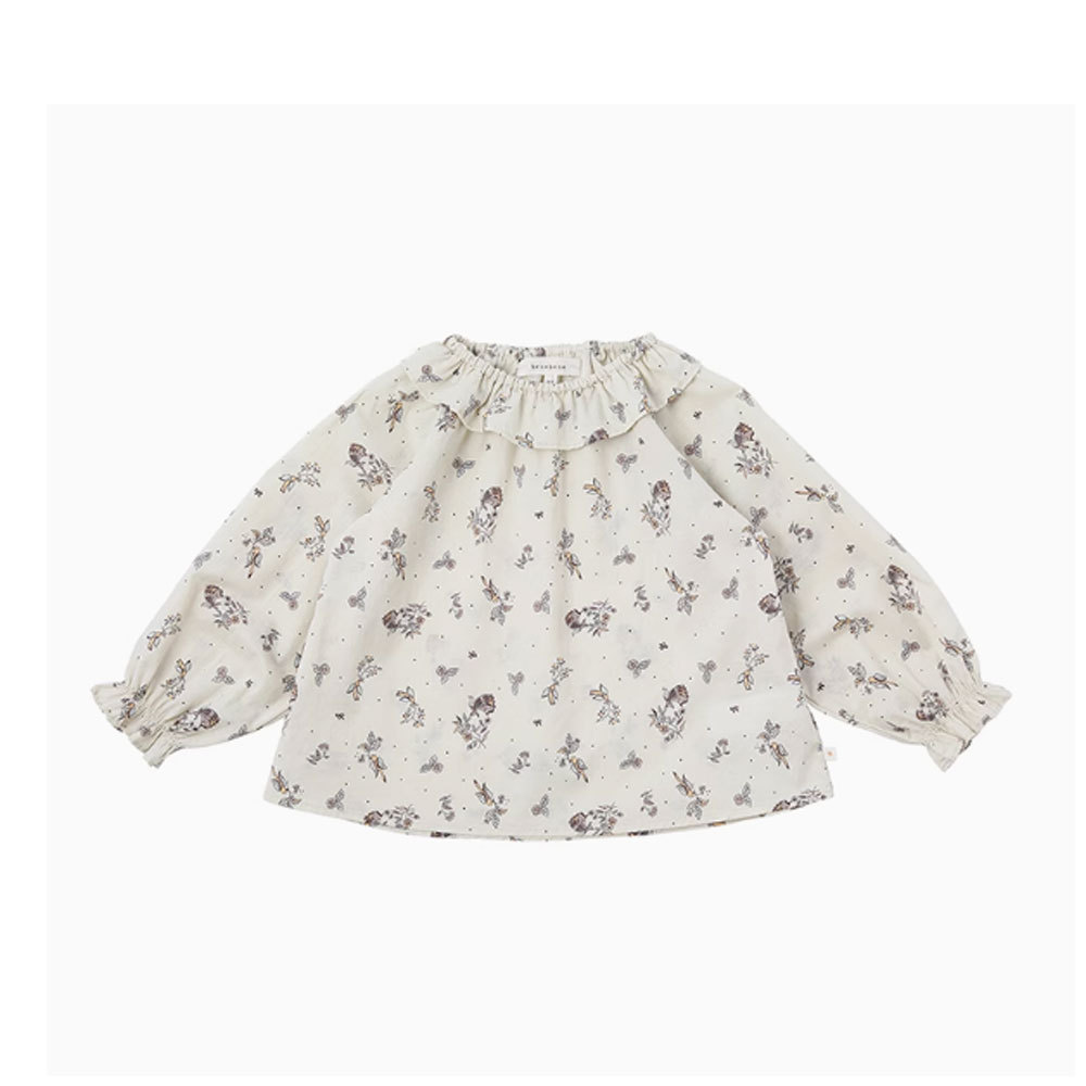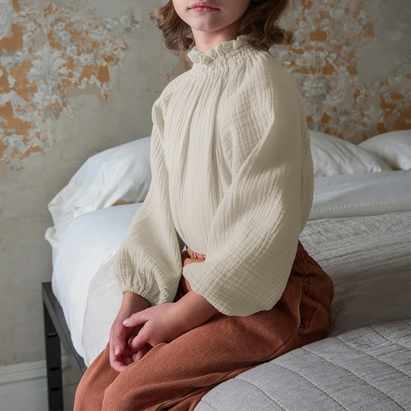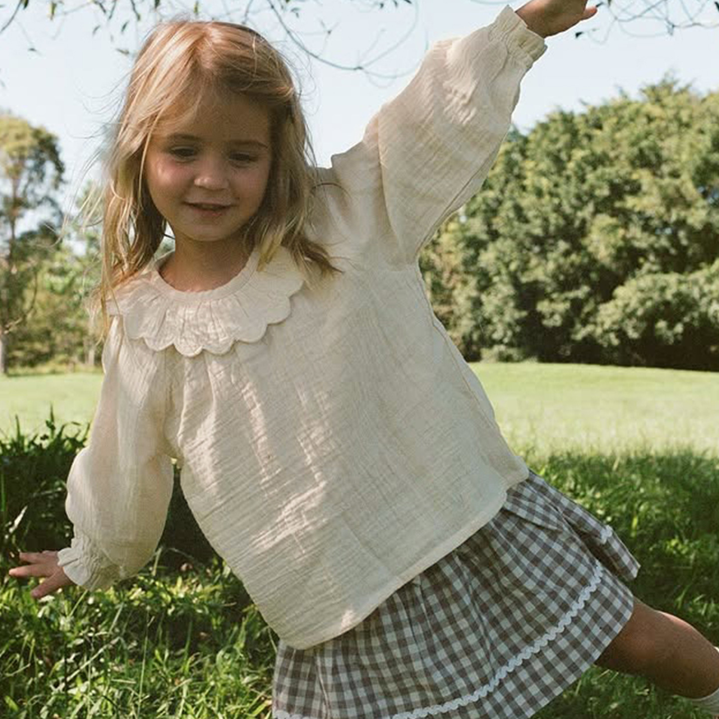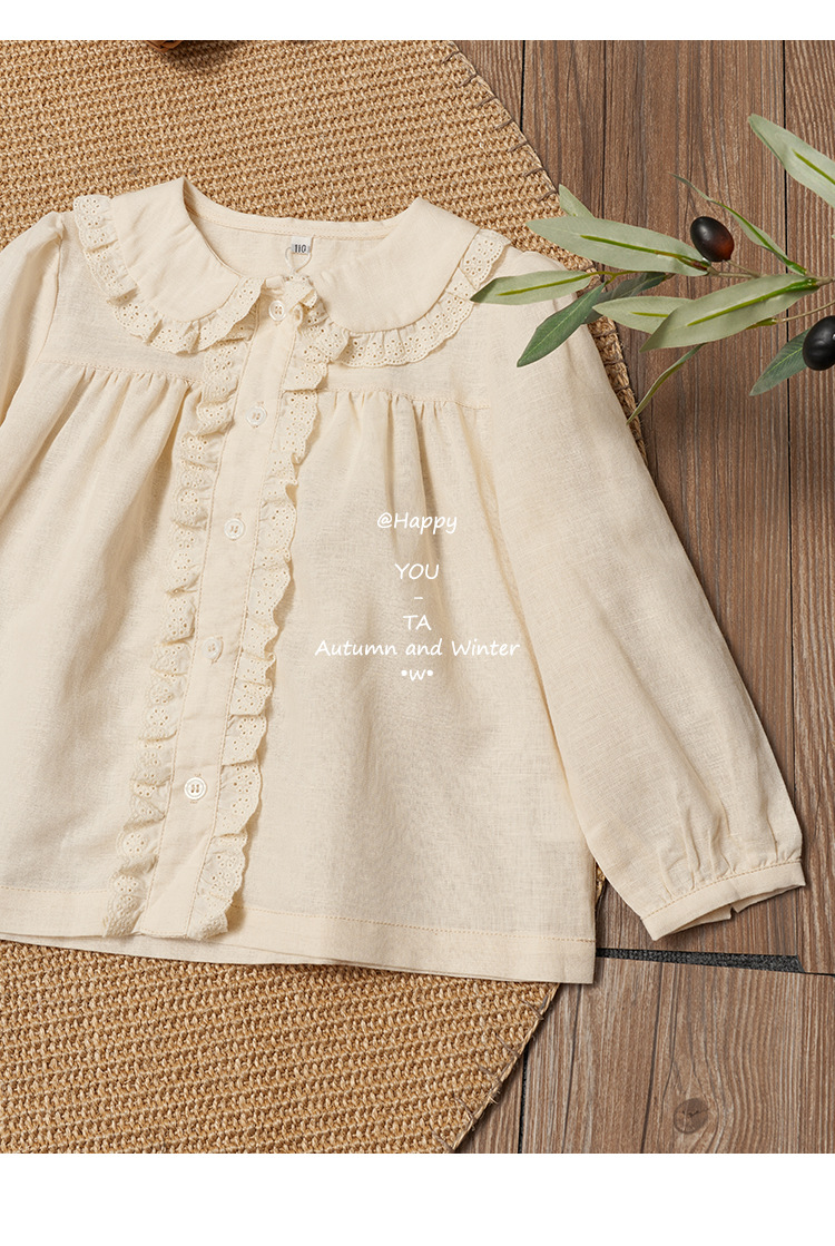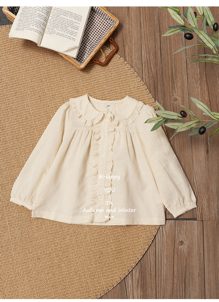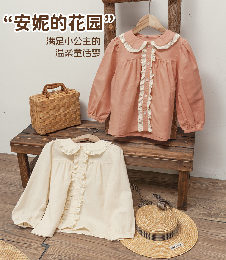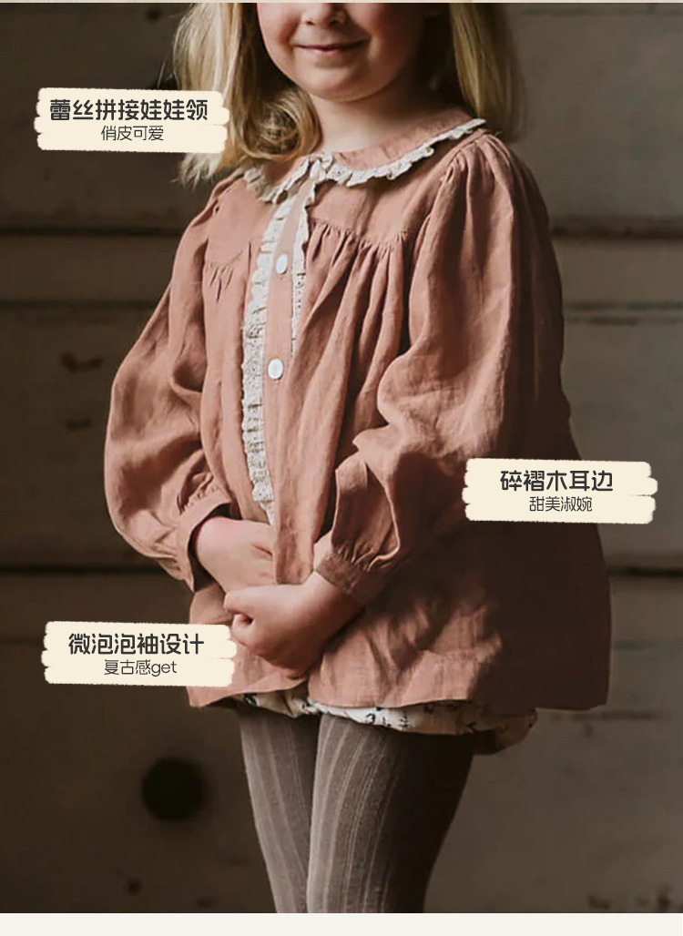 纯棉花瓣领设计女童长袖小衫26年春秋新款纱布棉透气亲肤女宝上衣