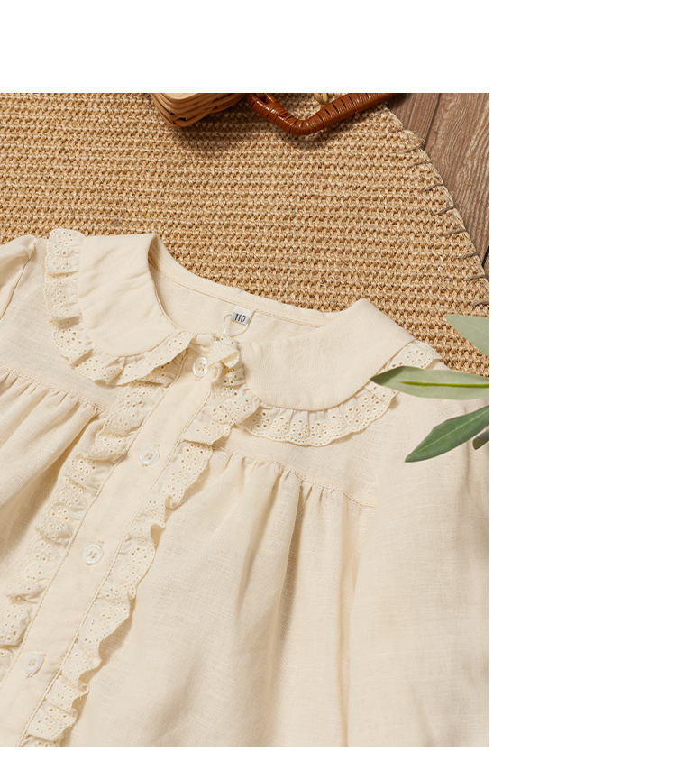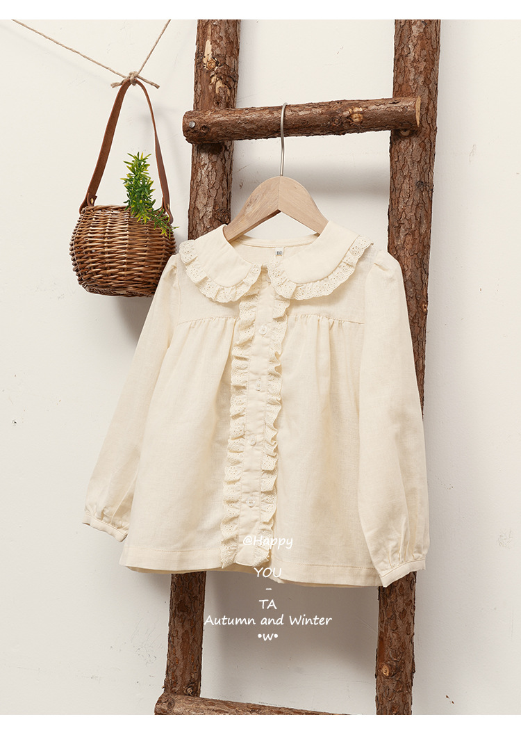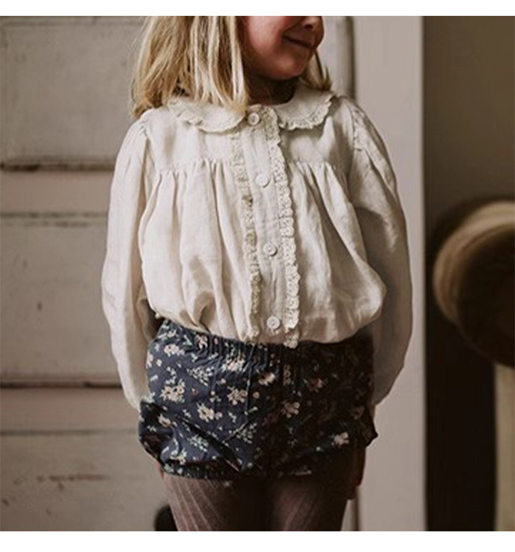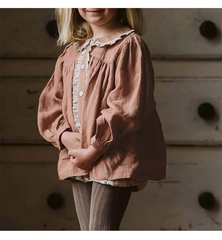 女児服綿麻ベビードールシャツ北欧風長袖Tシャツラウンドネックシャツカレッジスタイルカジュアルウエスタンスタイル麻綿トップス